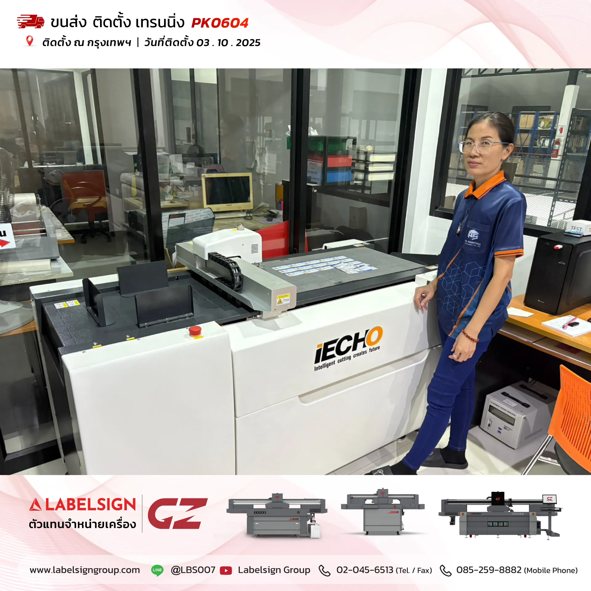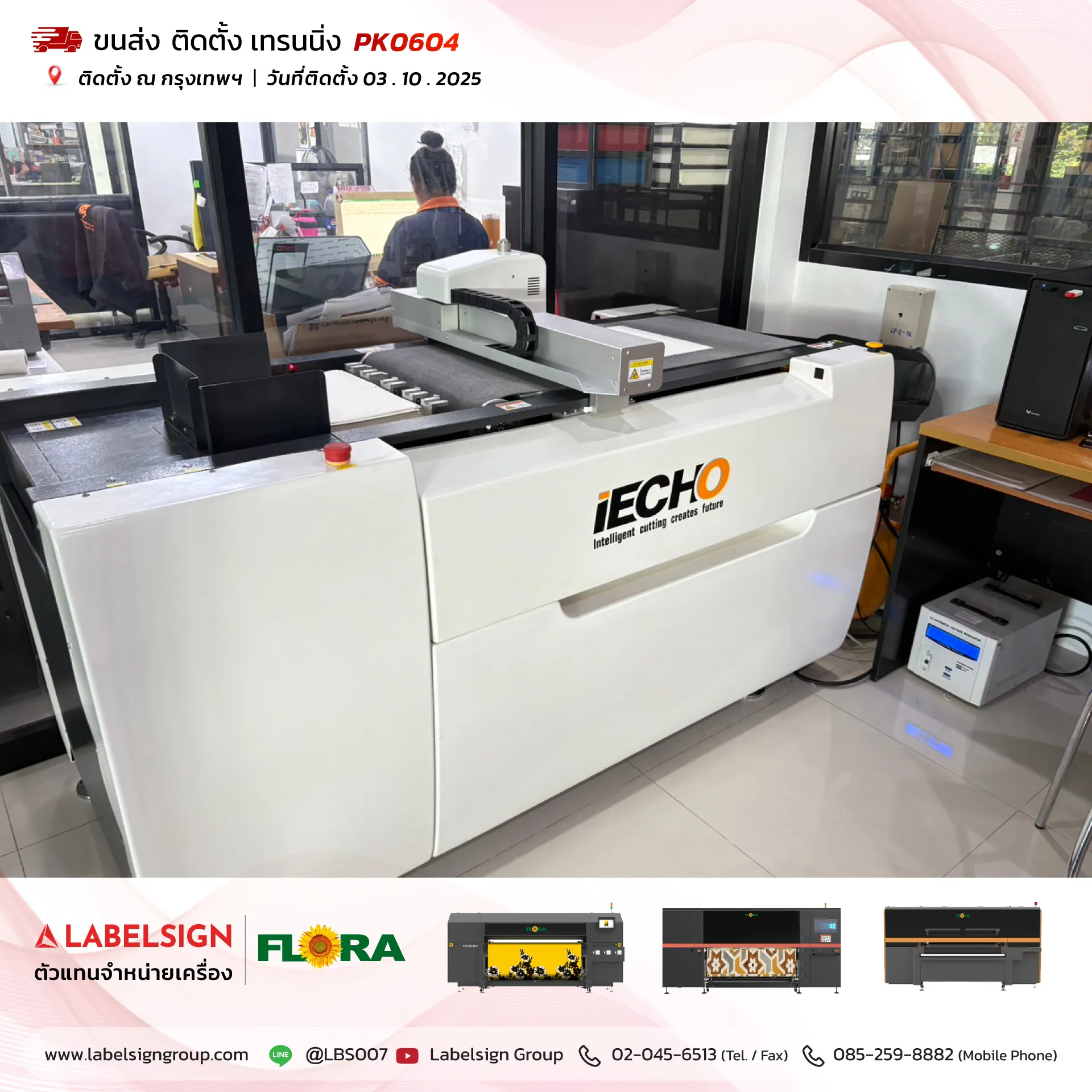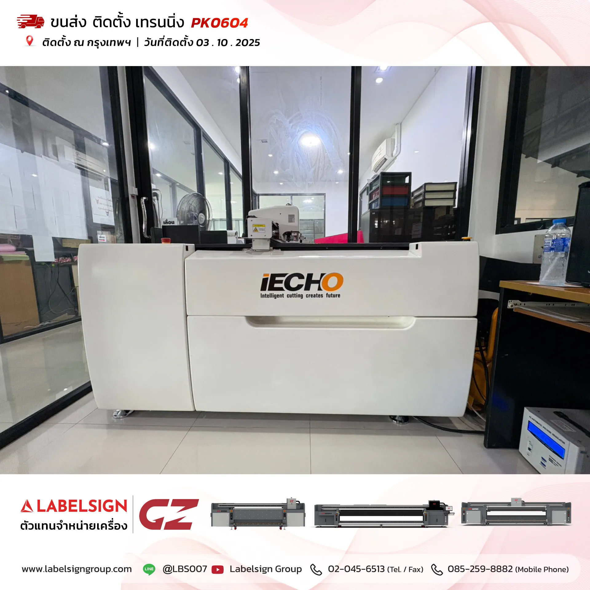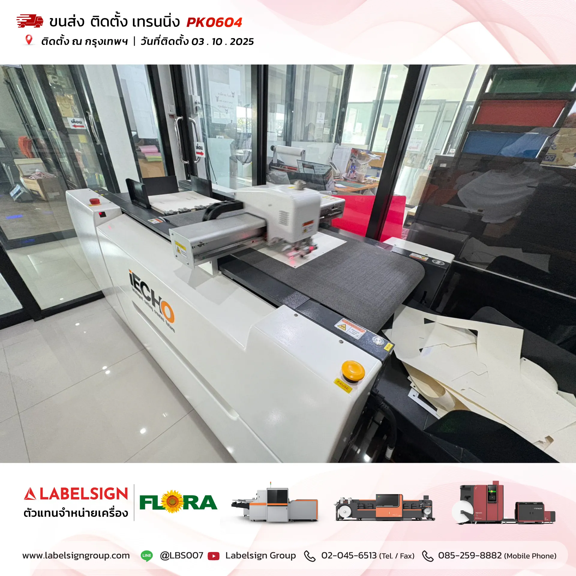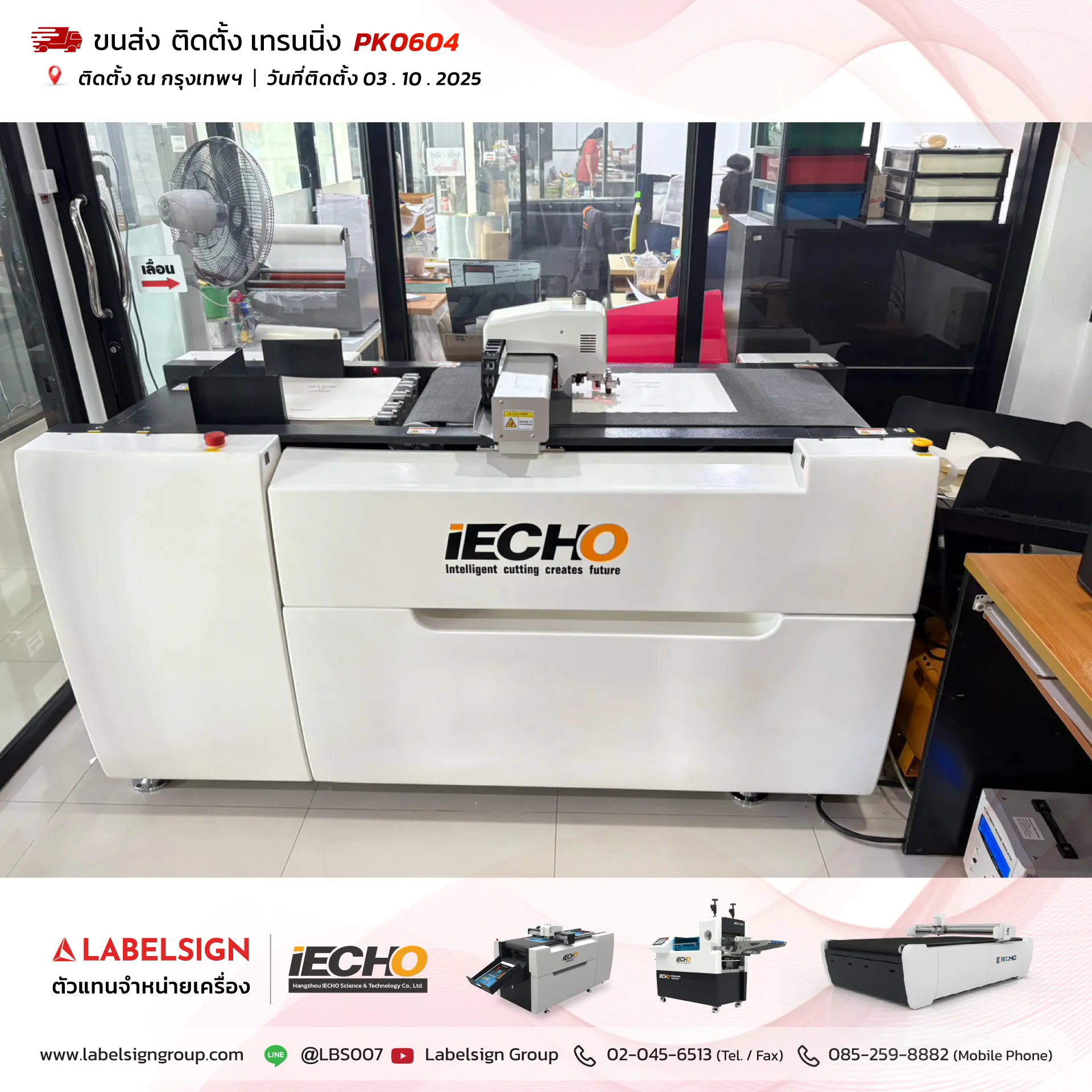 03 ตุลาคม 2025 จัดส่ง ติดตั้ง เทรนนิ่ง เครื่องตัดดิจิตอล Digital Cutting Machine Model : PK0604 ณ กรุงเทพมหานคร ขอบพระคุณลูกค้าที่เลือกใช้บริการ "เลเบิ้ลไซน์"