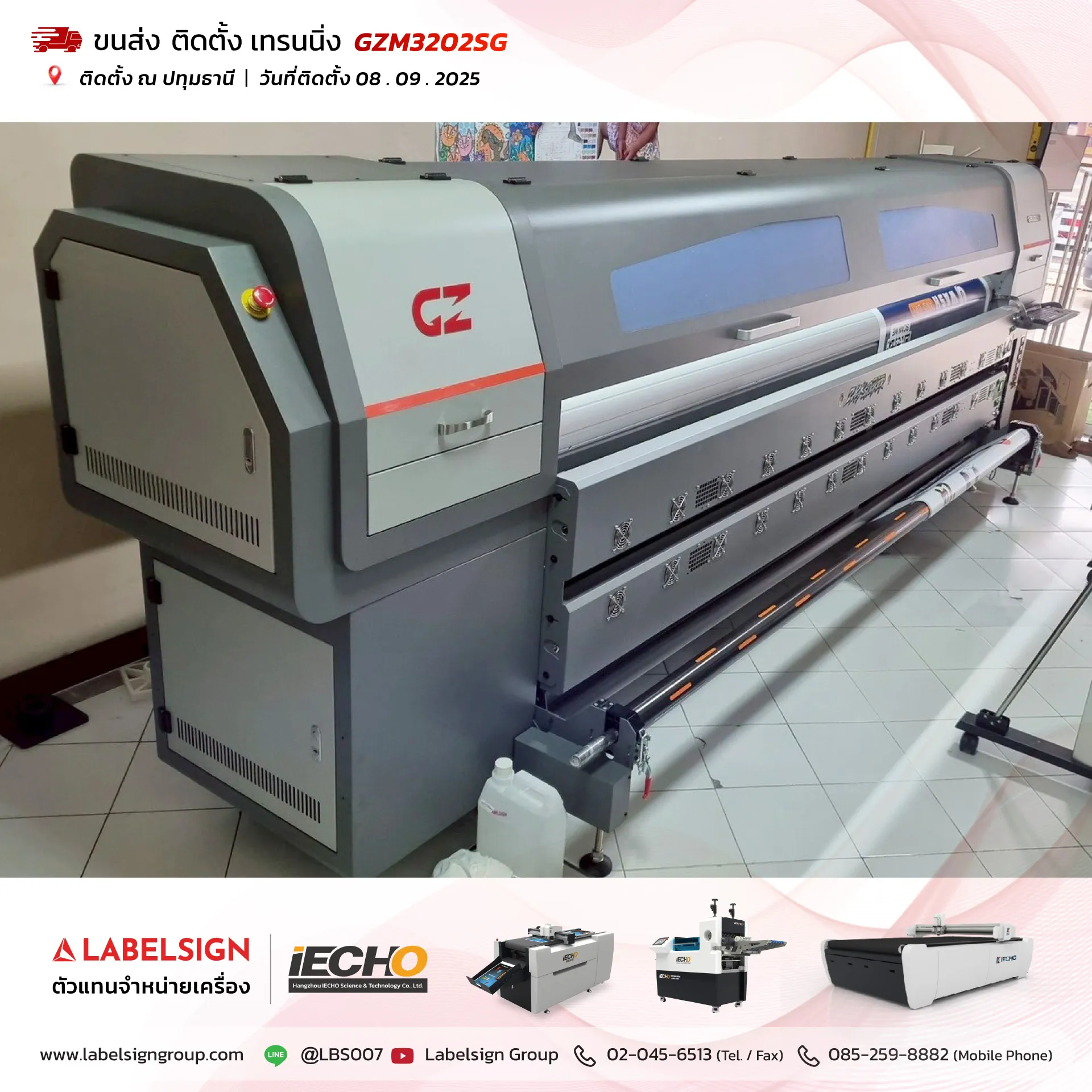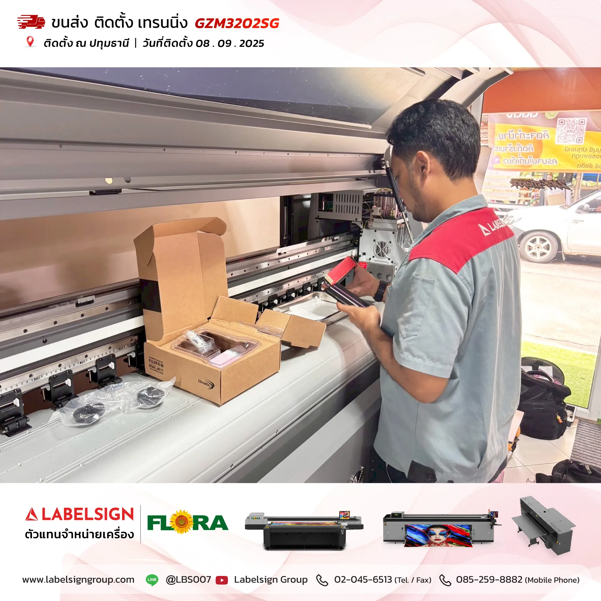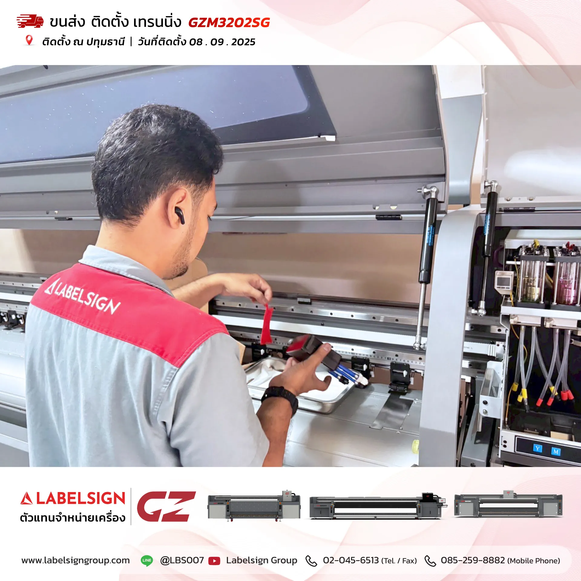 08 กันยายน 2025 จัดส่ง ติดตั้ง เทรนนิ่ง เครื่องพิมพ์ไวนิล Vinyl Printer Model : GZM3202SG ณ ปทุมธานี ขอบพระคุณลูกค้าที่เลือกใช้บริการ "เลเบิ้ลไซน์"