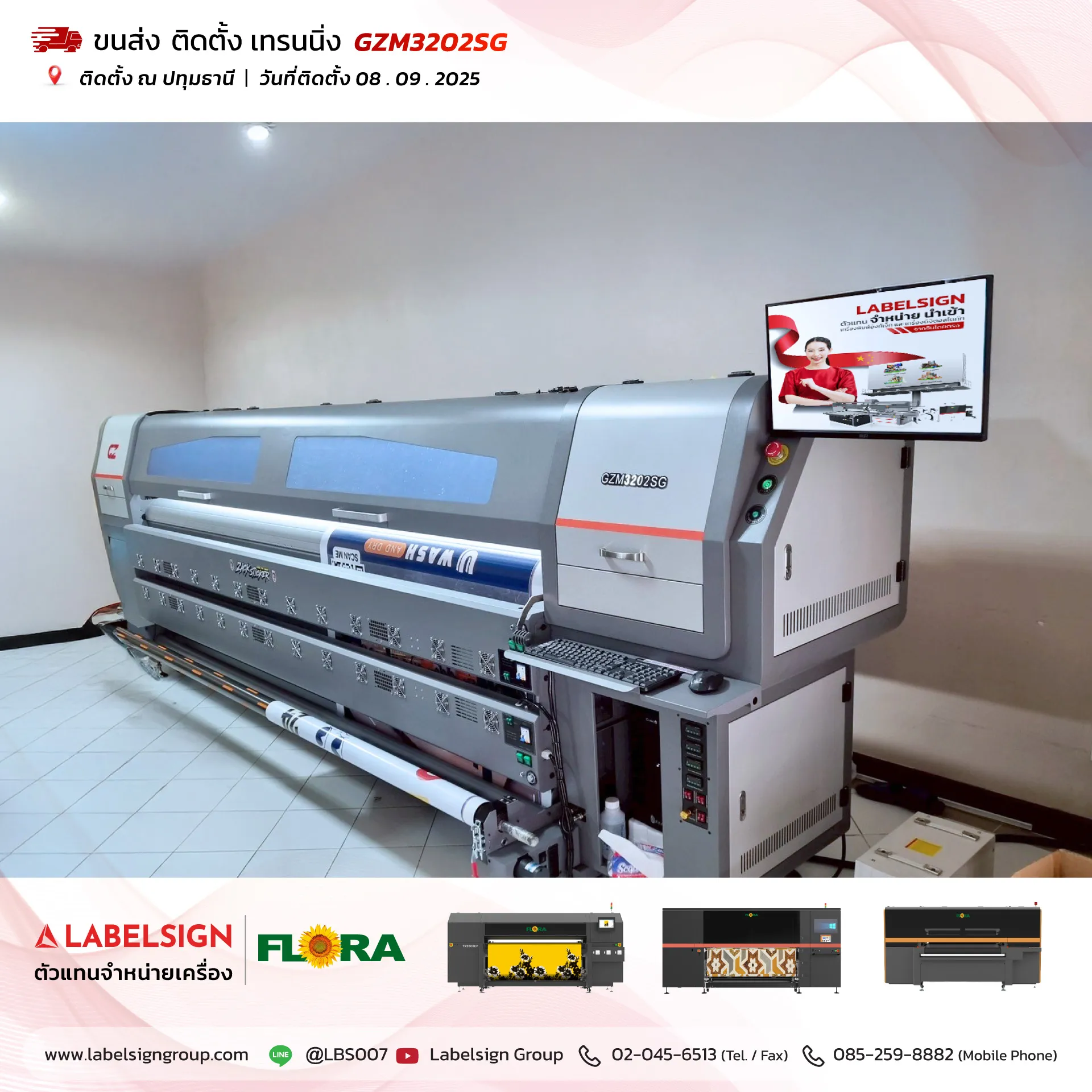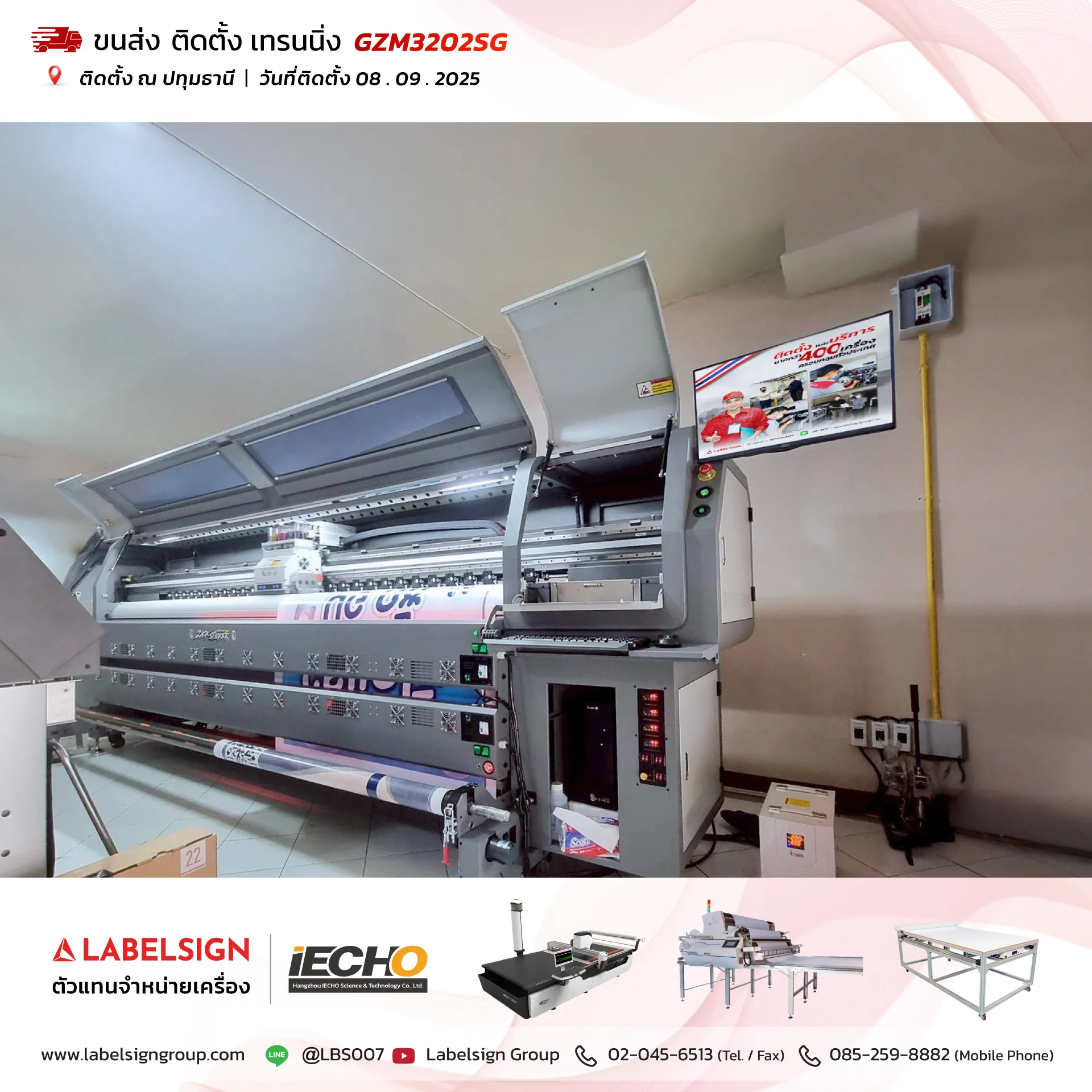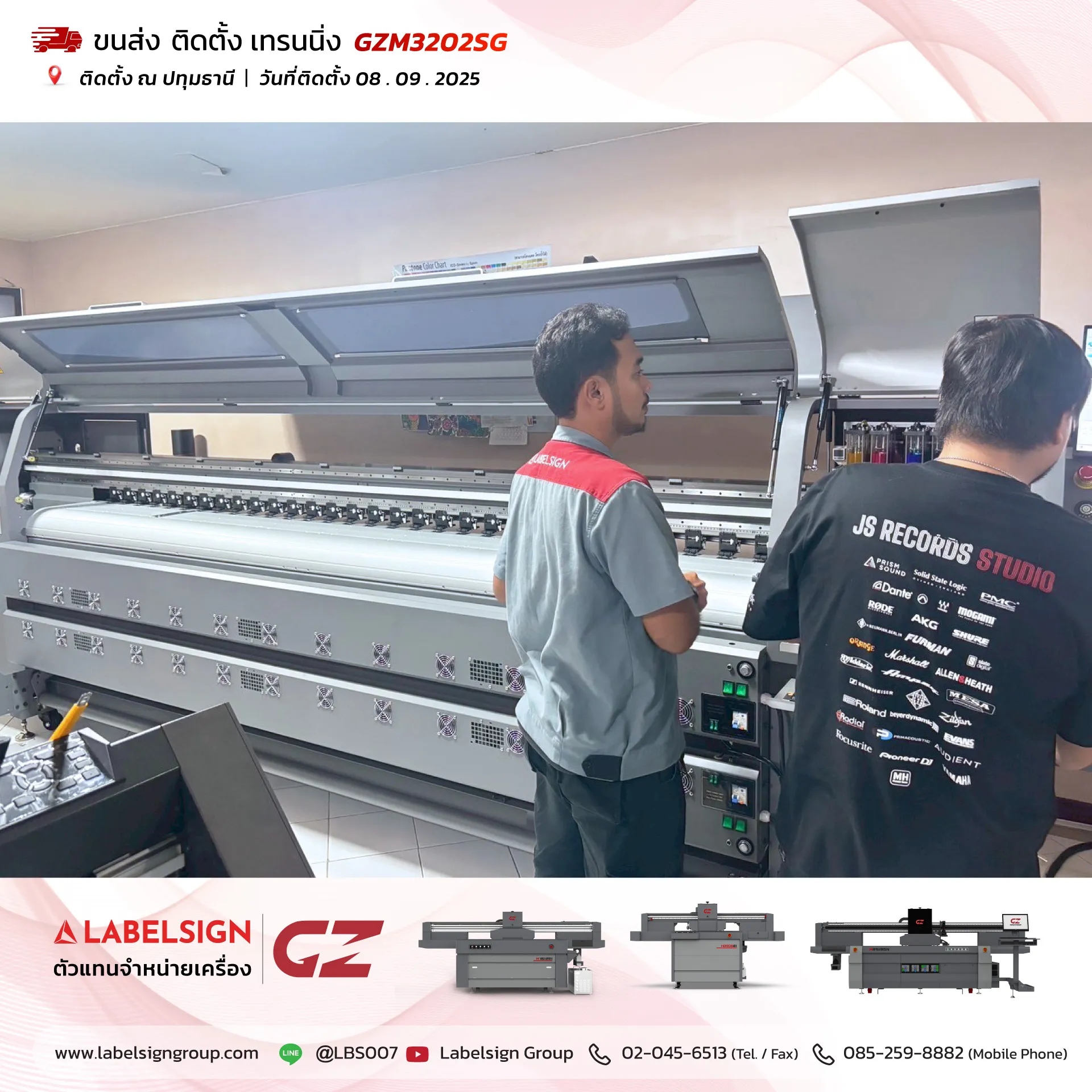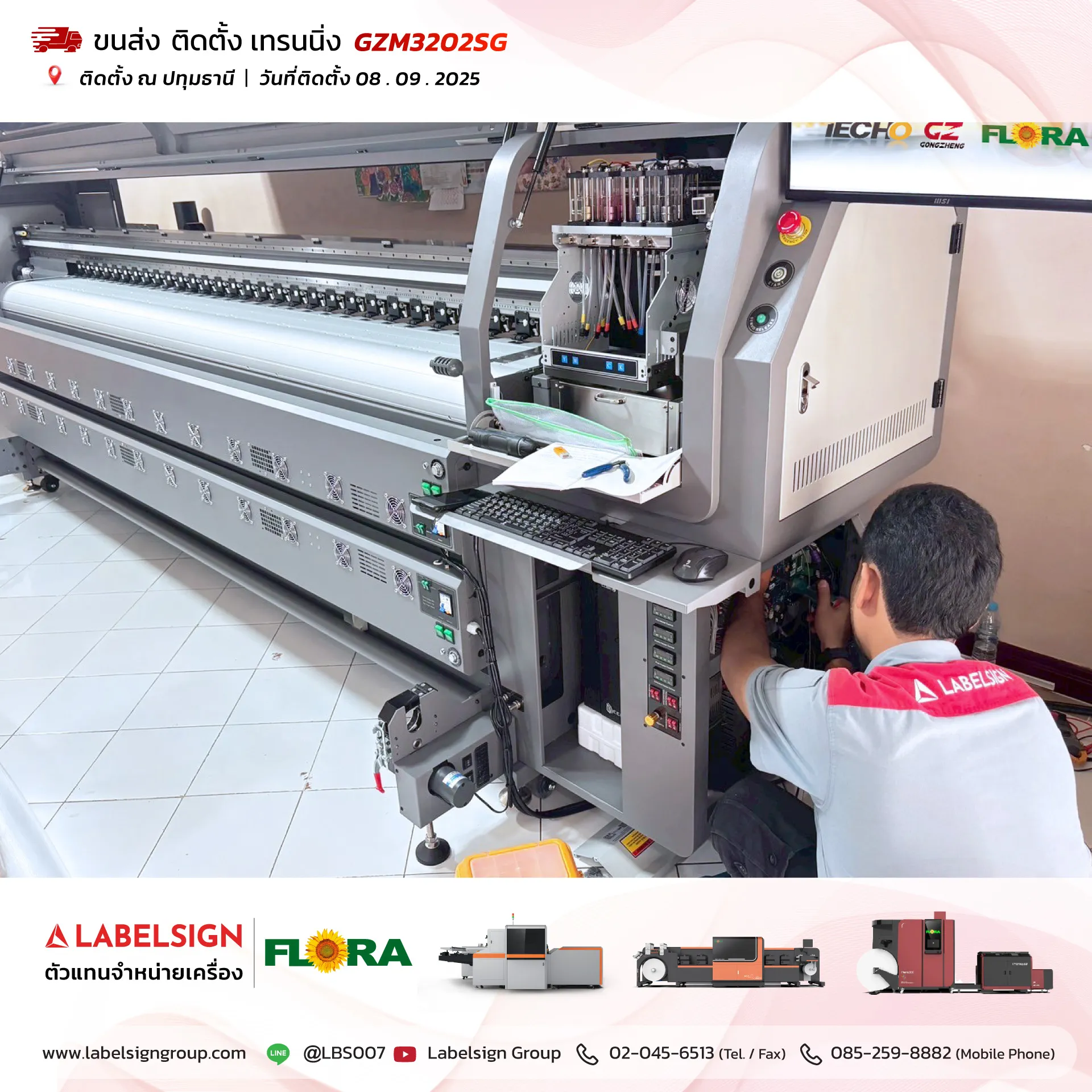 08 กันยายน 2025 จัดส่ง ติดตั้ง เทรนนิ่ง เครื่องพิมพ์ไวนิล Vinyl Printer Model : GZM3202SG ณ ปทุมธานี ขอบพระคุณลูกค้าที่เลือกใช้บริการ "เลเบิ้ลไซน์"