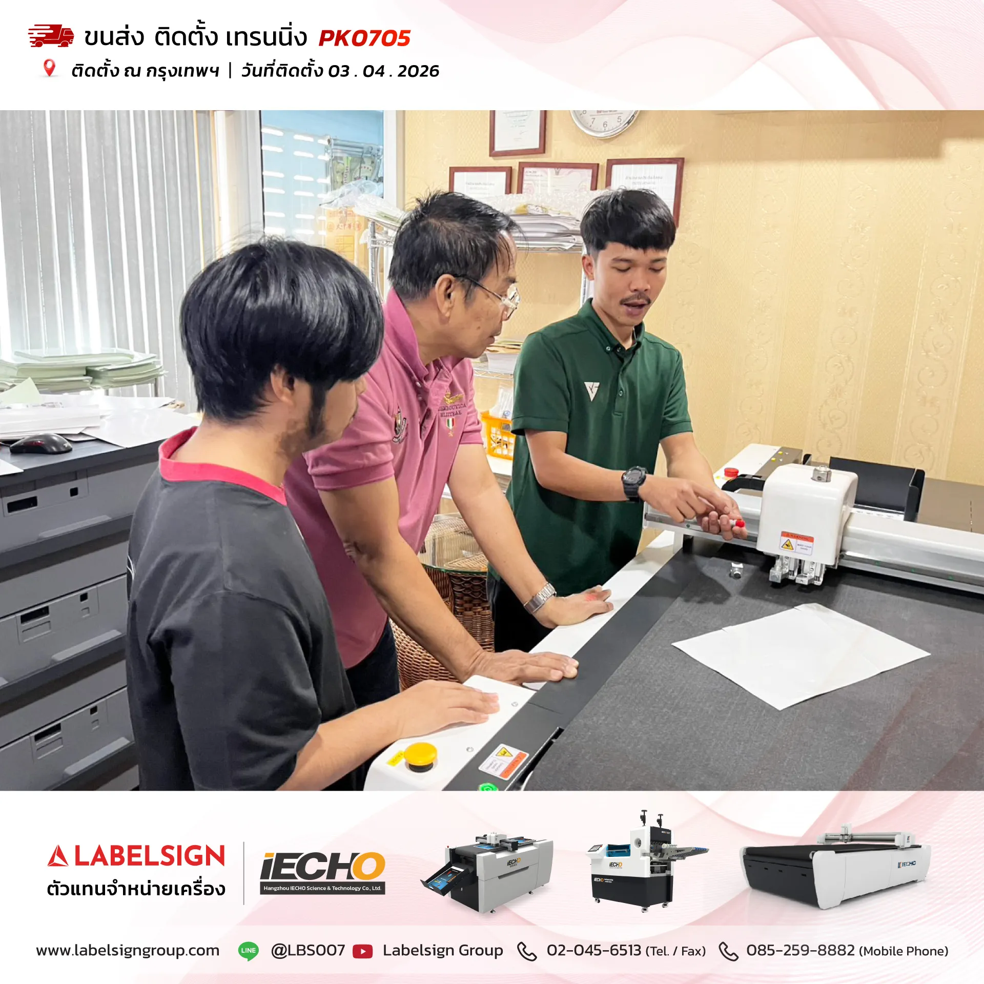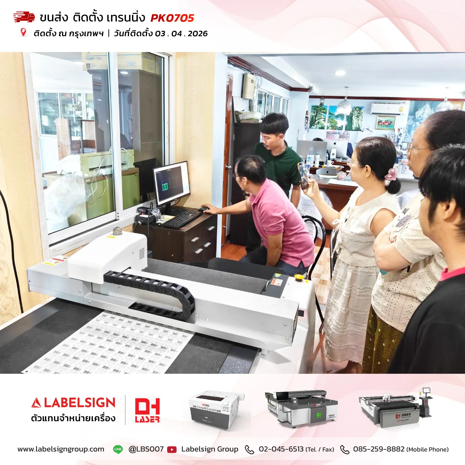 03 เมษายน 2026 จัดส่ง ติดตั้ง เทรนนิ่ง เครื่องตัดดิจิตอล Digital Cutting machine Model: PK0705 ณ กรุงเทพมหานคร ขอบพระคุณลูกค้าที่เลือกใช้บริการ "เลเบิ้ลไซน์"