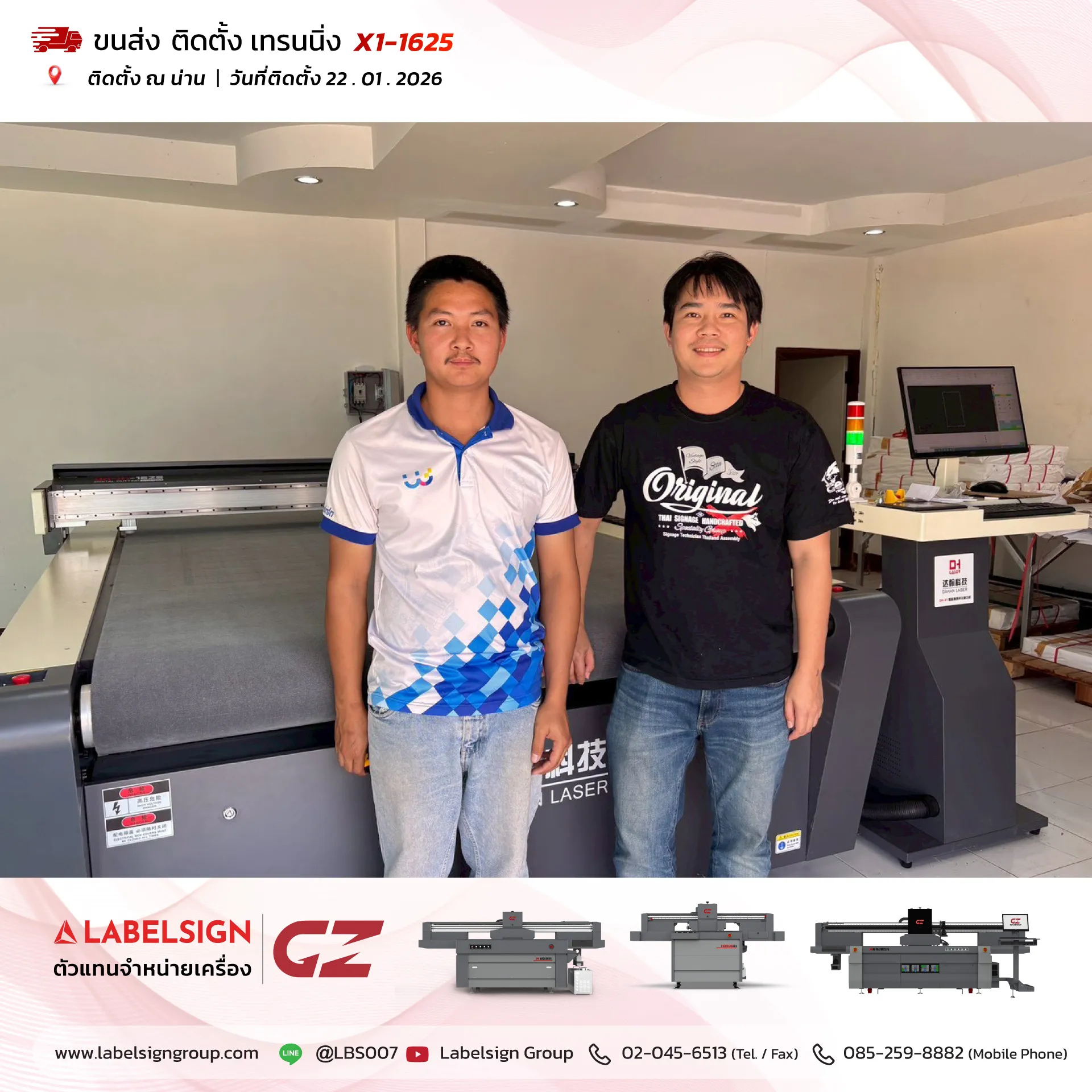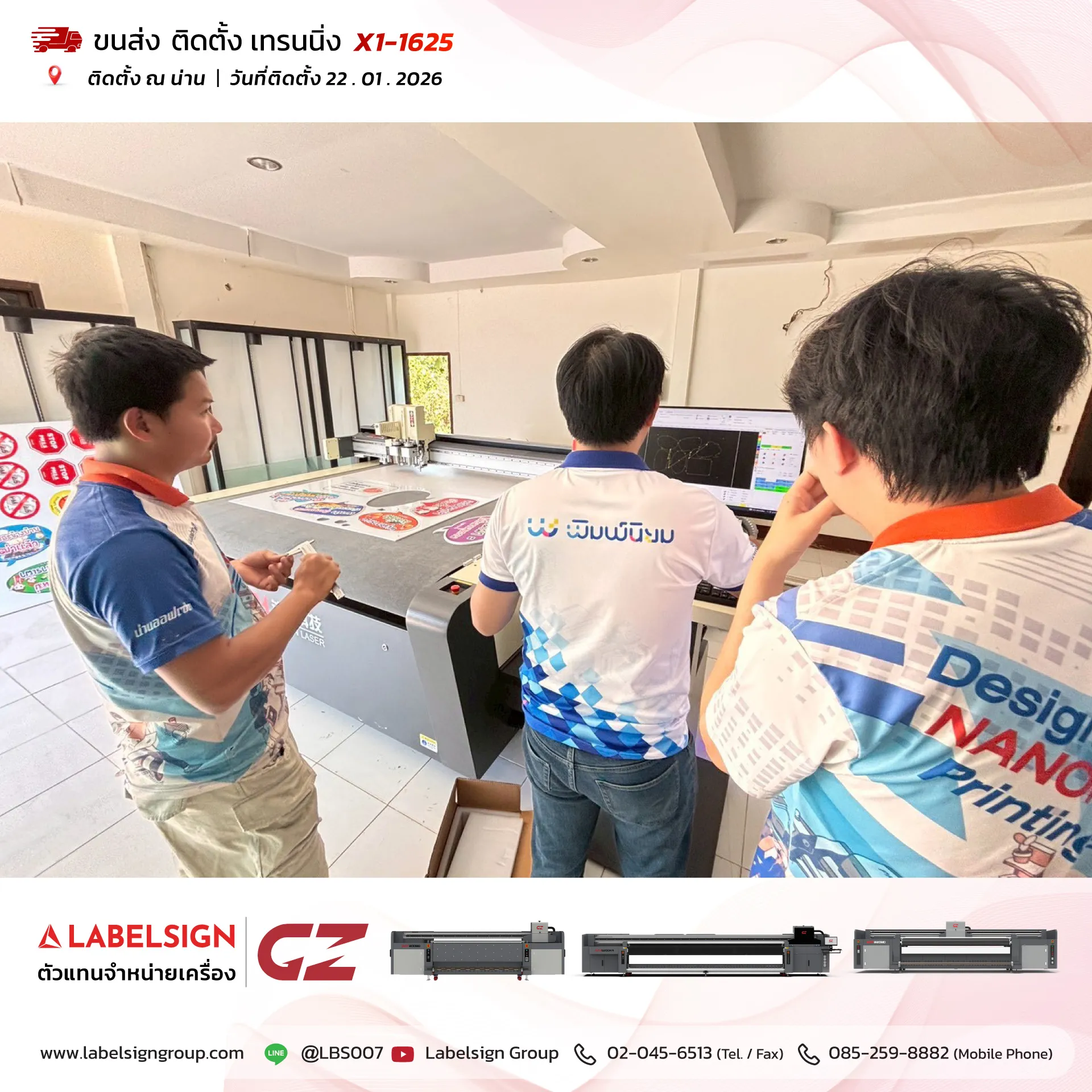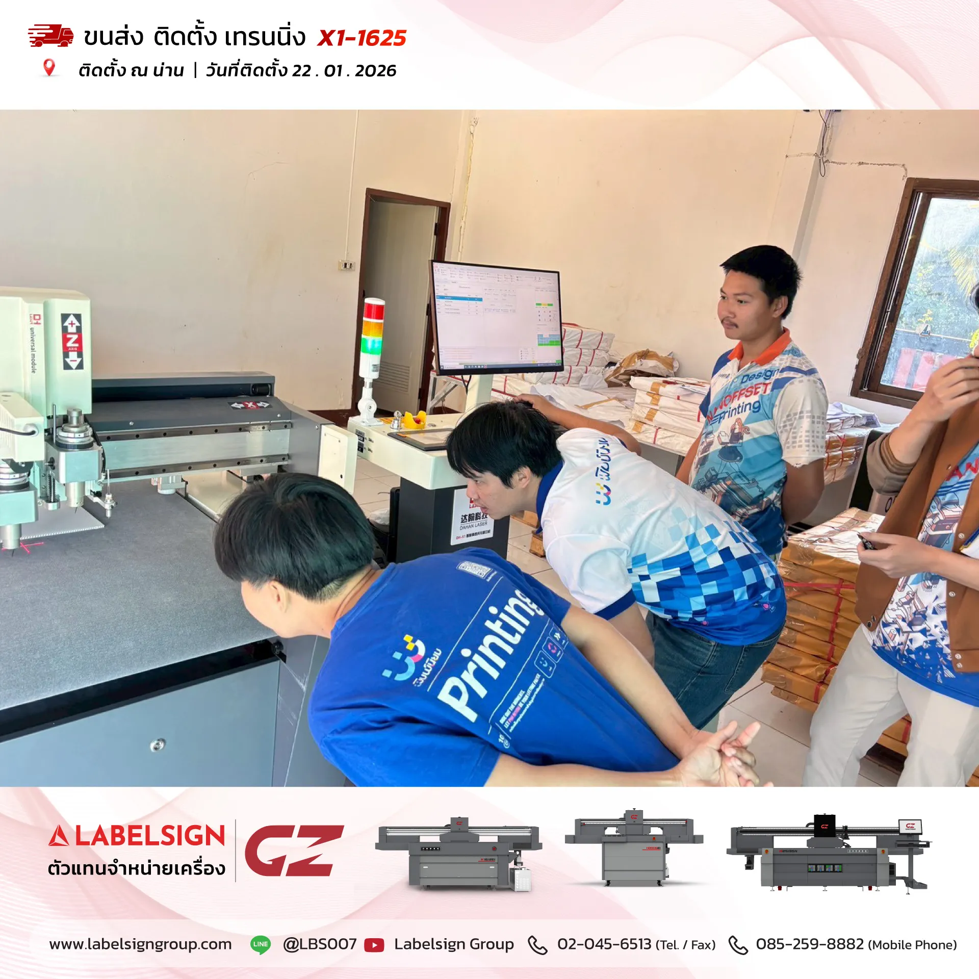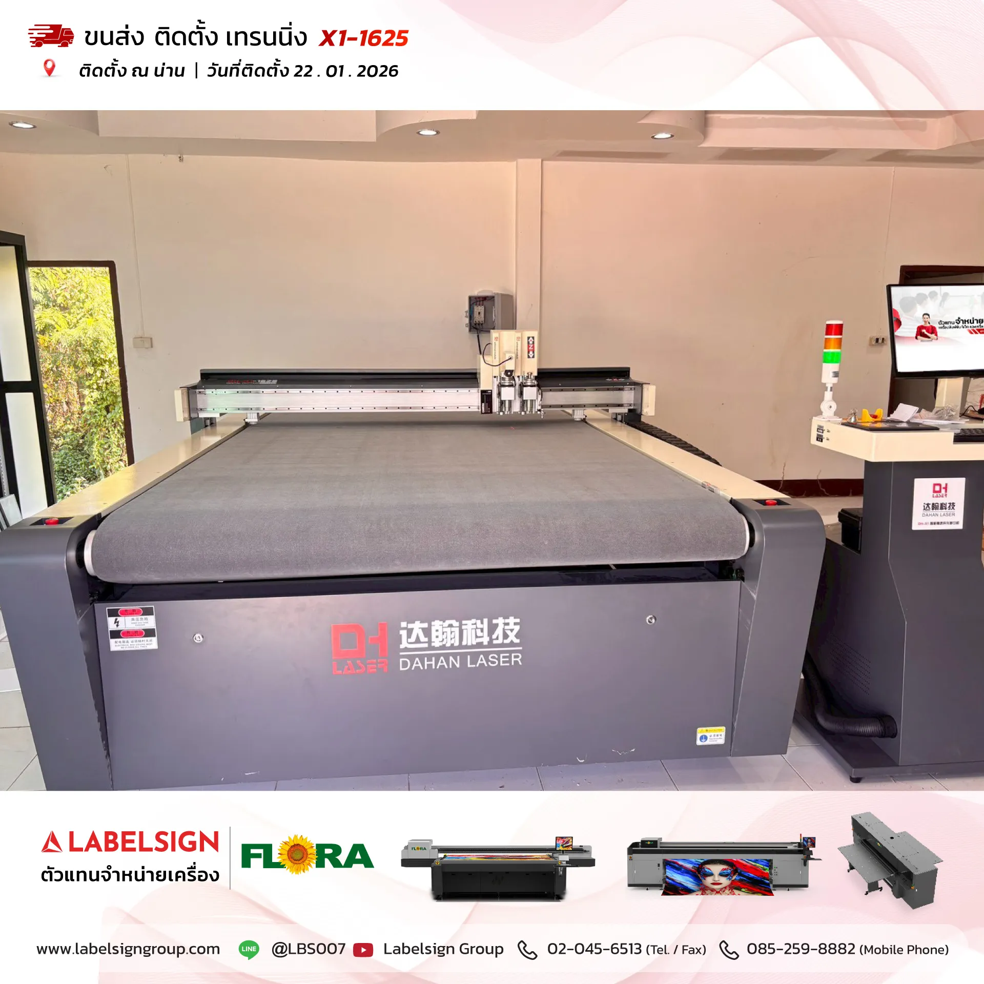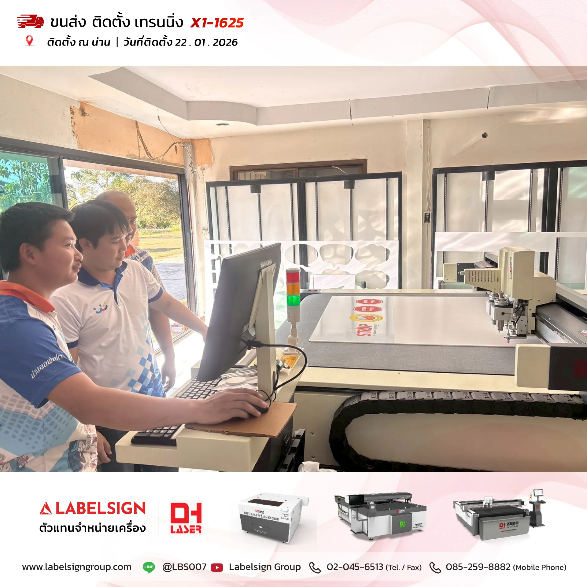 22 มกราคม 2026 จัดส่ง ติดตั้ง เทรนนิ่ง เครื่องตัดดิจิตอล Digital Cutting Machine Model : X1-1625 ณ น่าน ขอบพระคุณลูกค้าที่เลือกใช้บริการ "เลเบิ้ลไซน์"