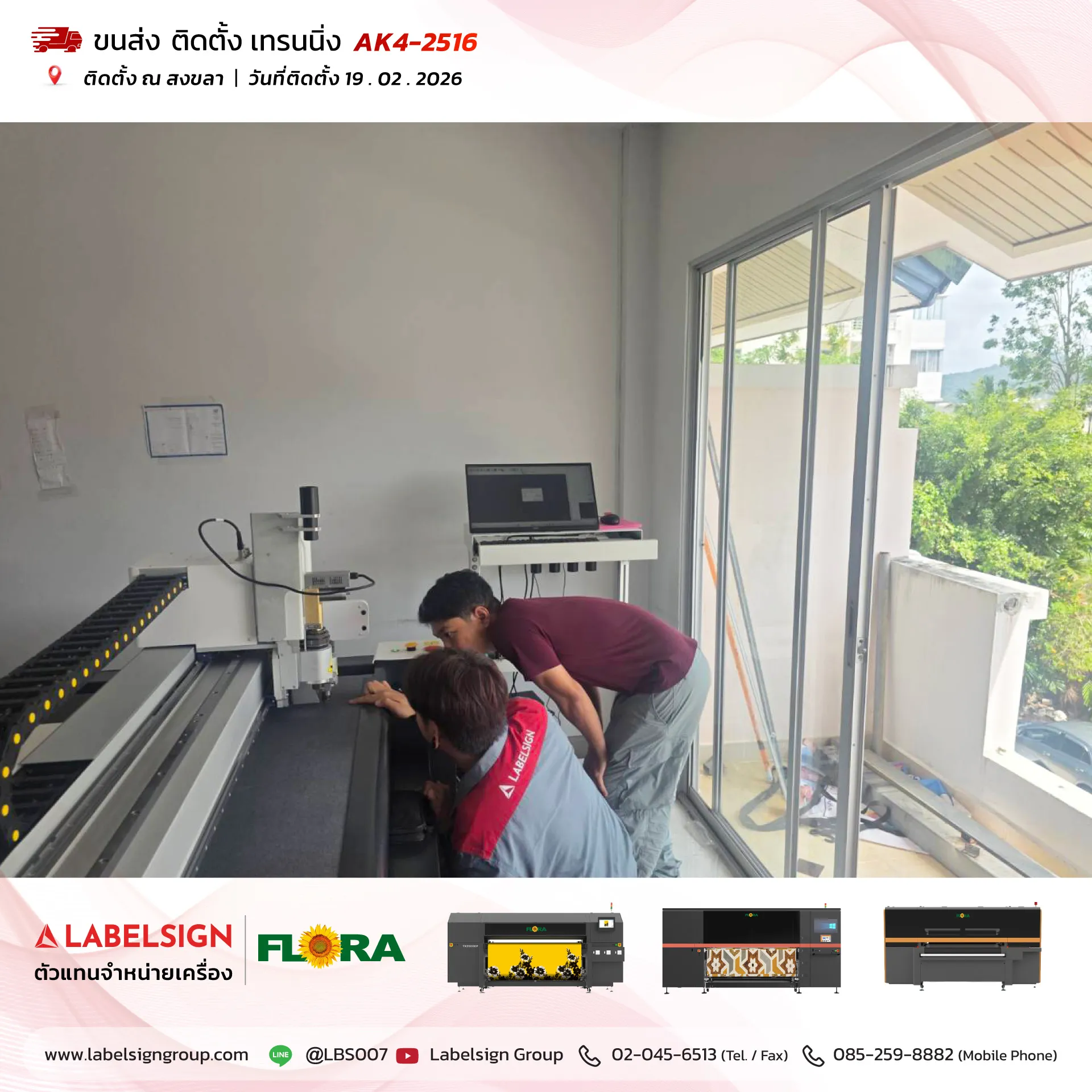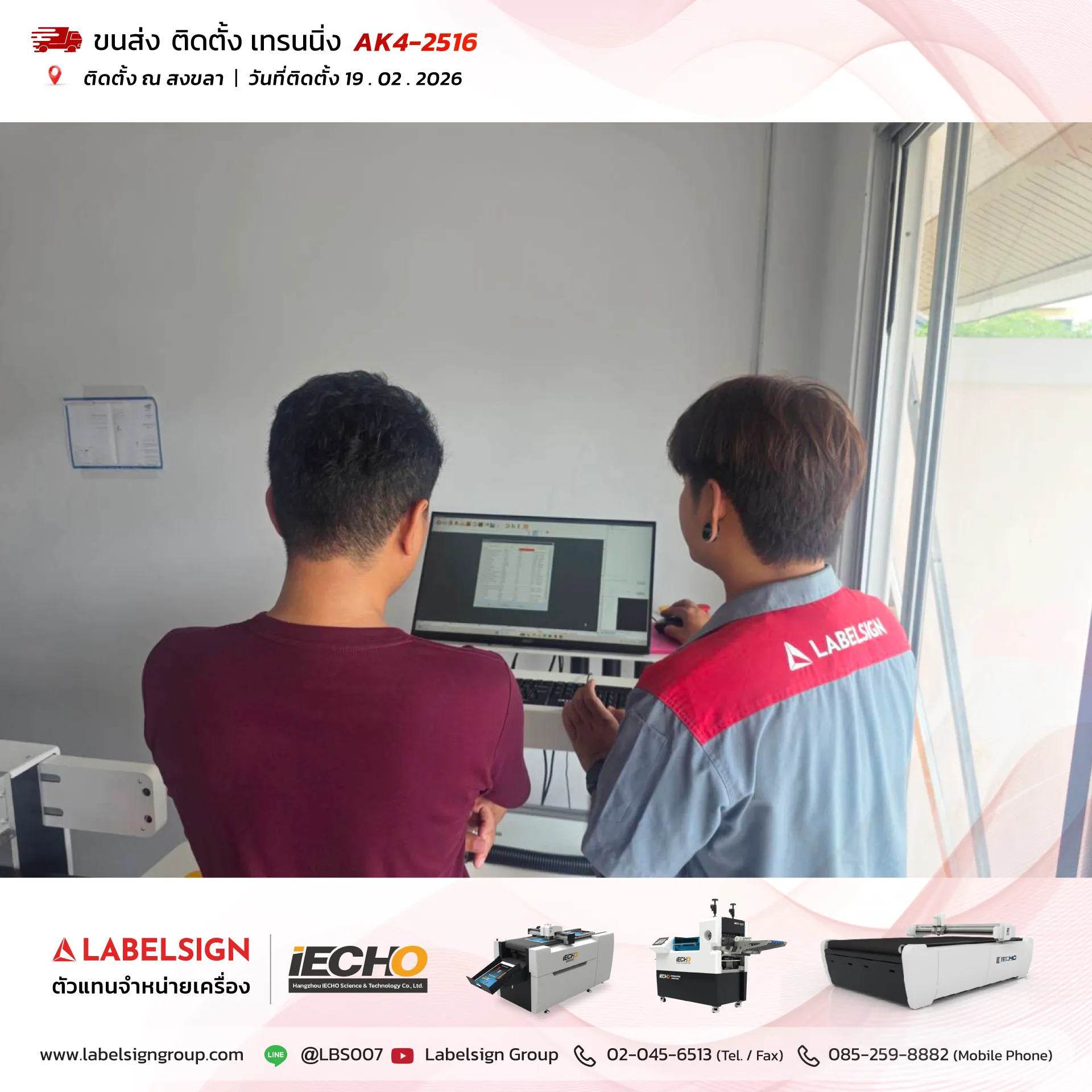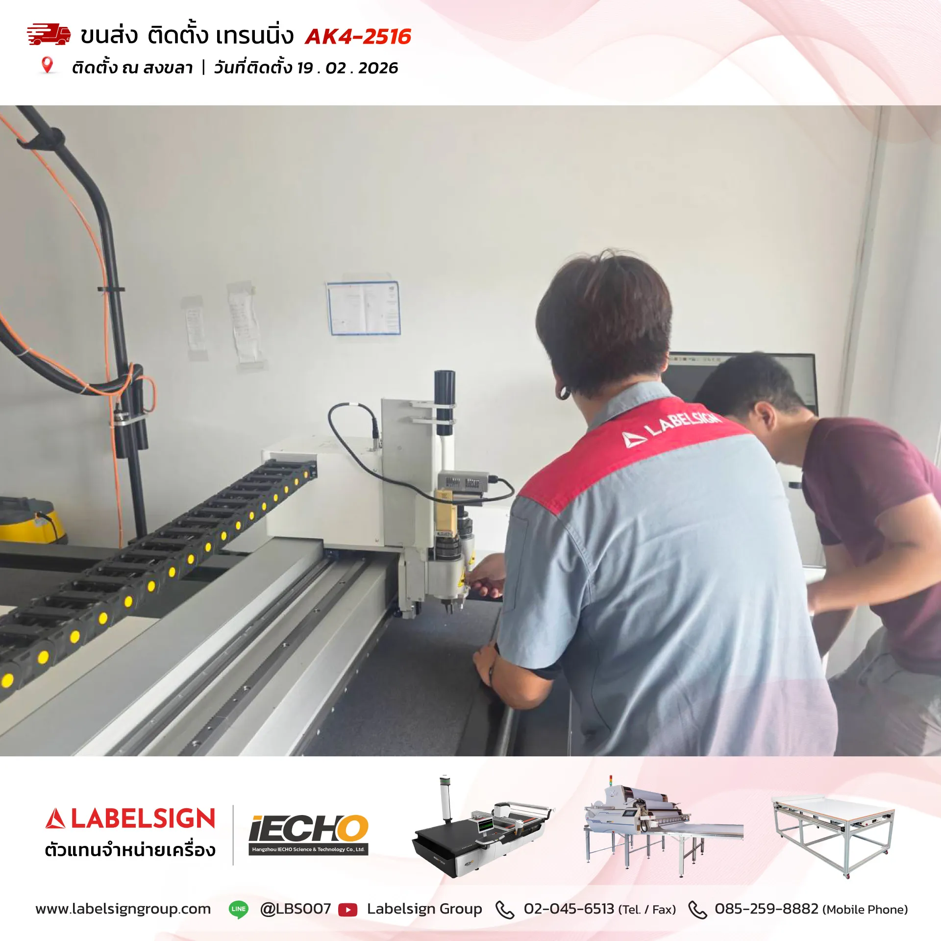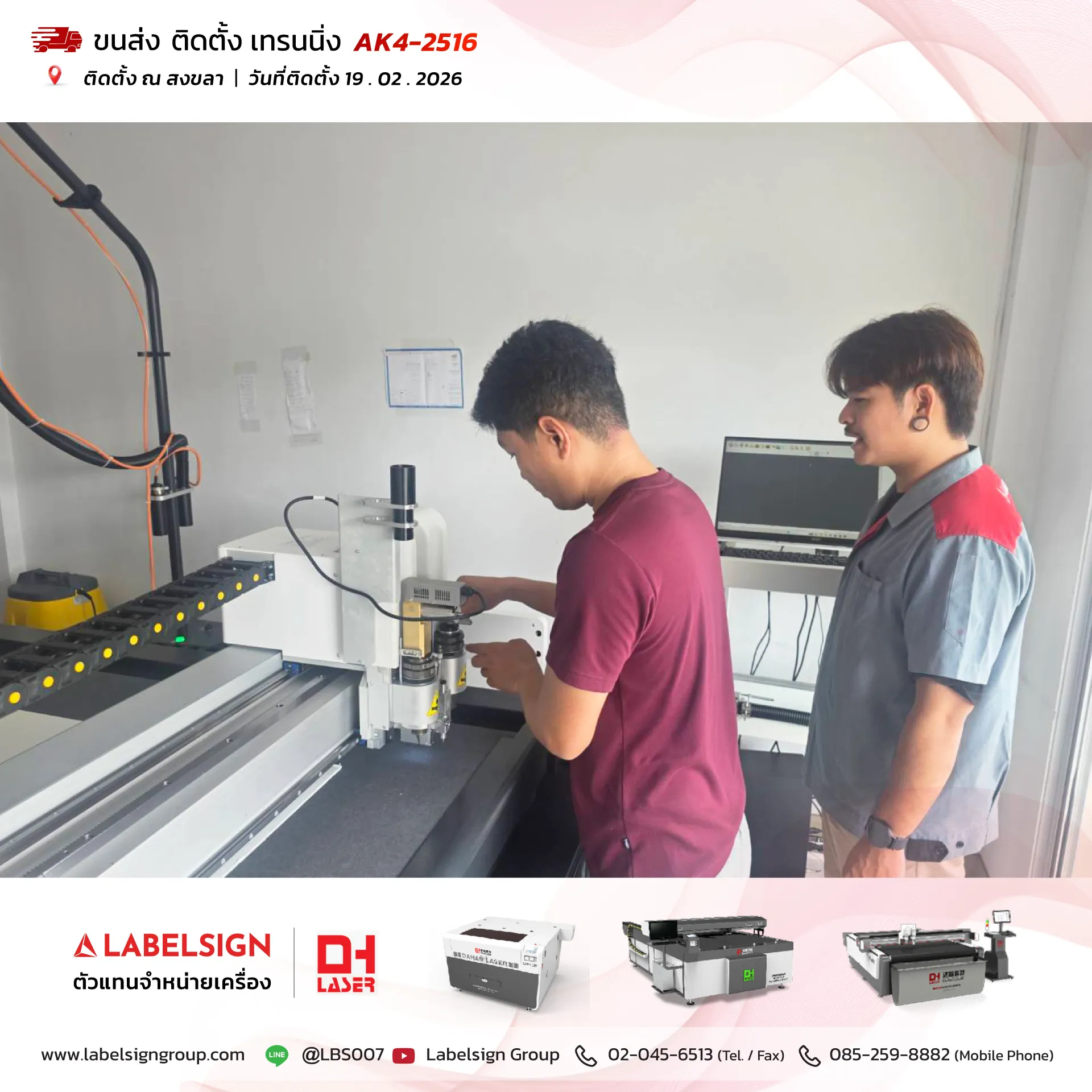 19 กุมภาพันธ์ 2026 จัดส่ง ติดตั้ง เทรนนิ่ง เครื่องตัดดิจิตอล Digital Cutting Machine Model : AK4-2526 ณ สงขลา ขอบพระคุณลูกค้าที่เลือกใช้บริการ "เลเบิ้ลไซน์"