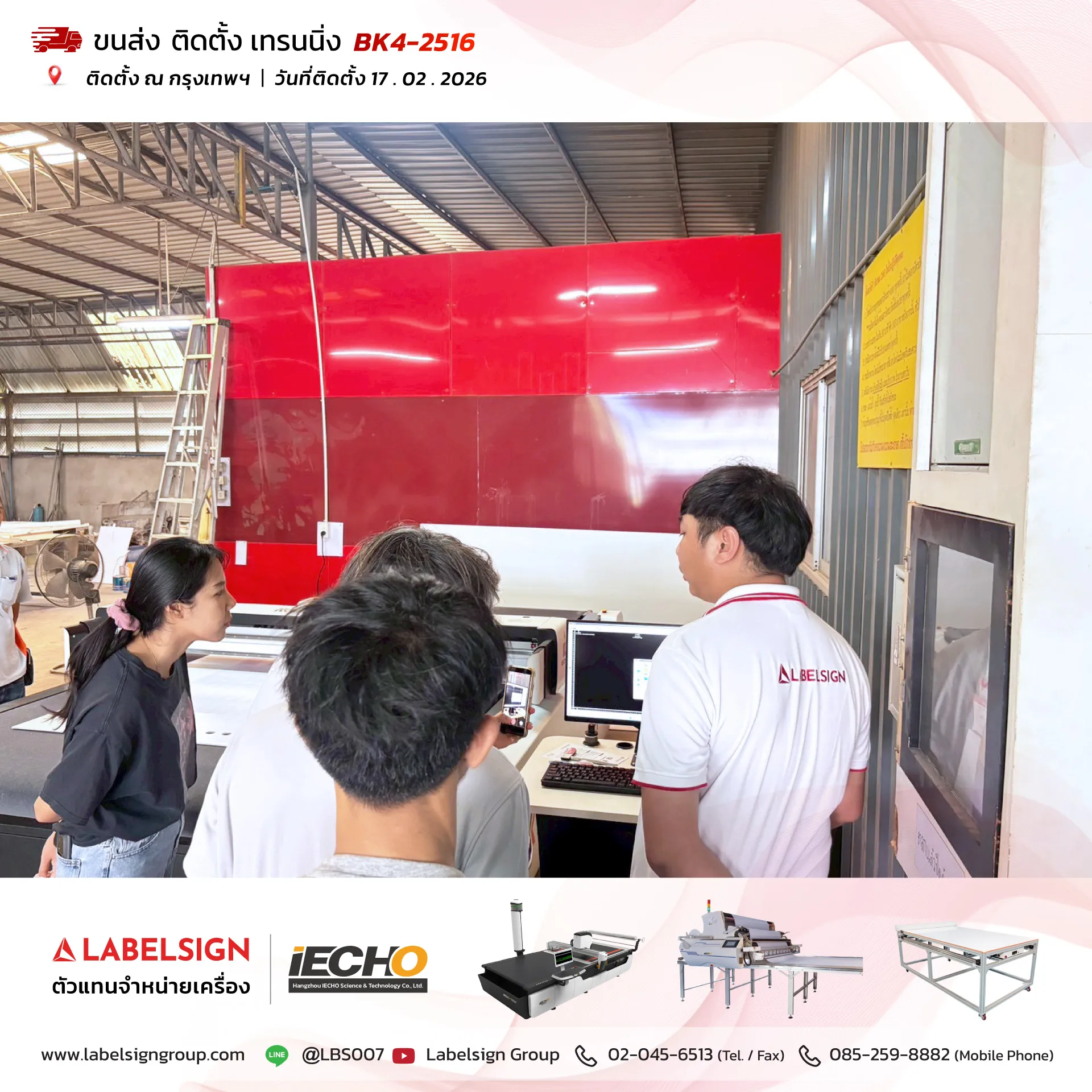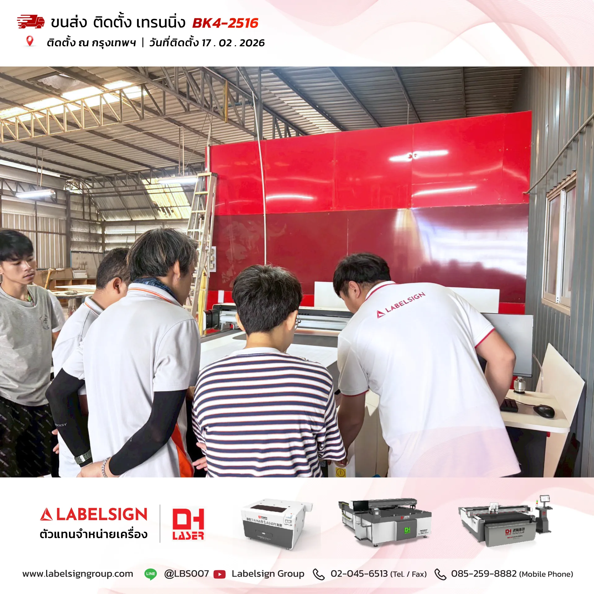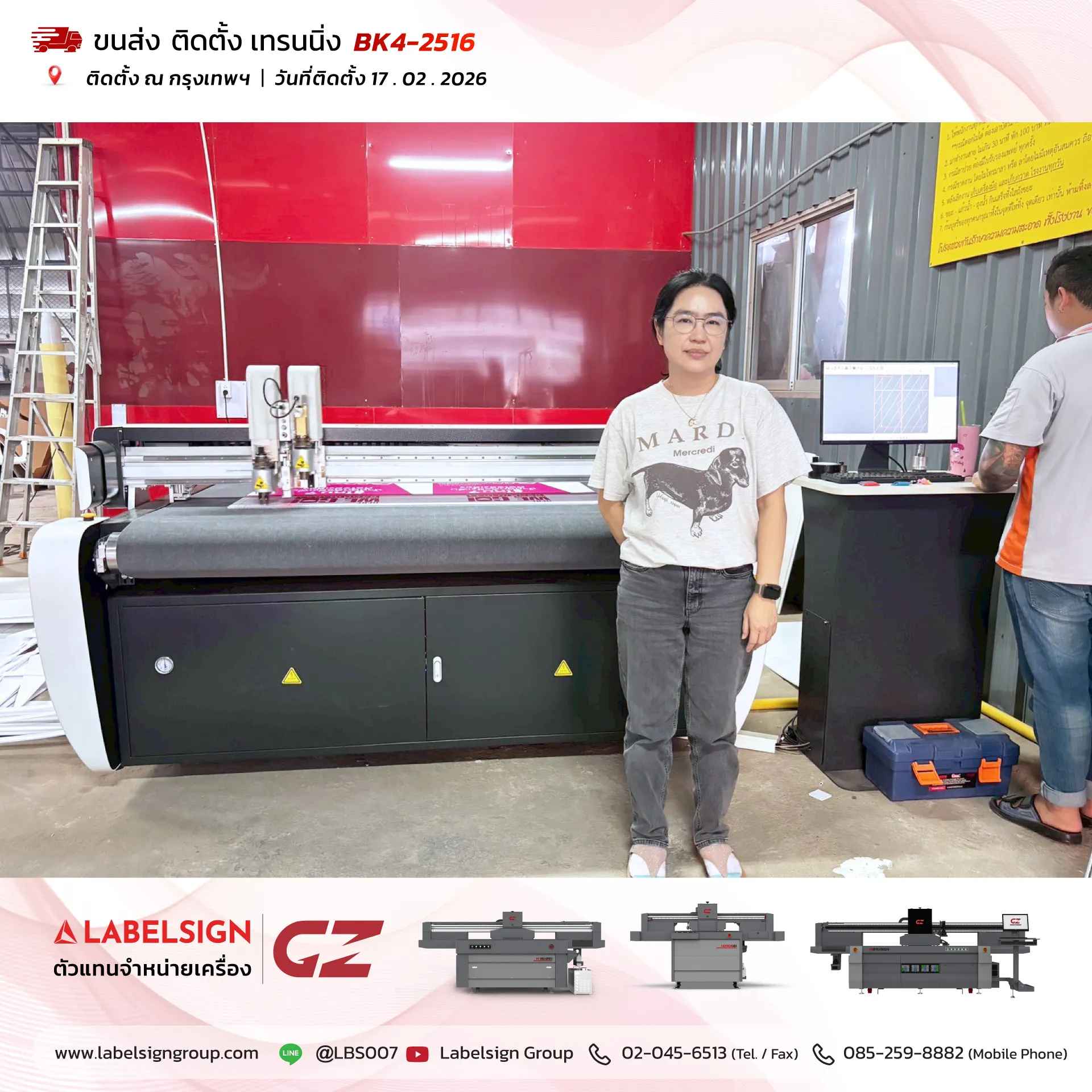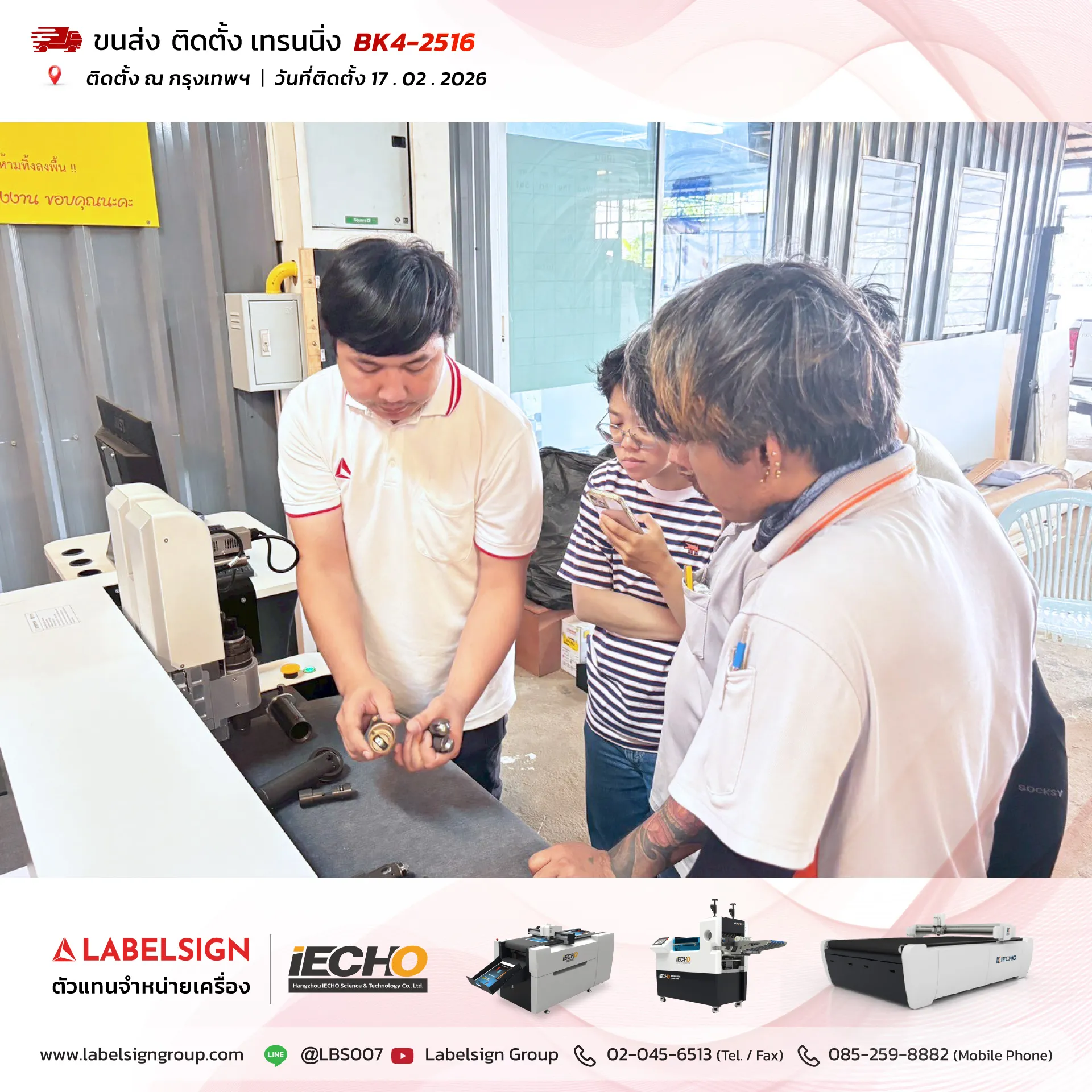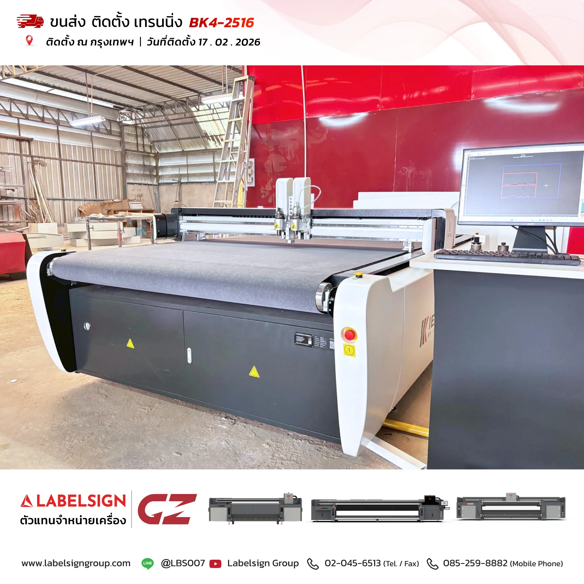 17 กุมภาพันธ์ 2026 จัดส่ง ติดตั้ง เทรนนิ่ง เครื่องตัดดิจิตอล Digital Cutting Machine BK4-2516 ณ กรุงเทพมหานคร ขอบพระคุณลูกค้าที่เลือกใช้บริการ "เลเบิ้ลไซน์"
