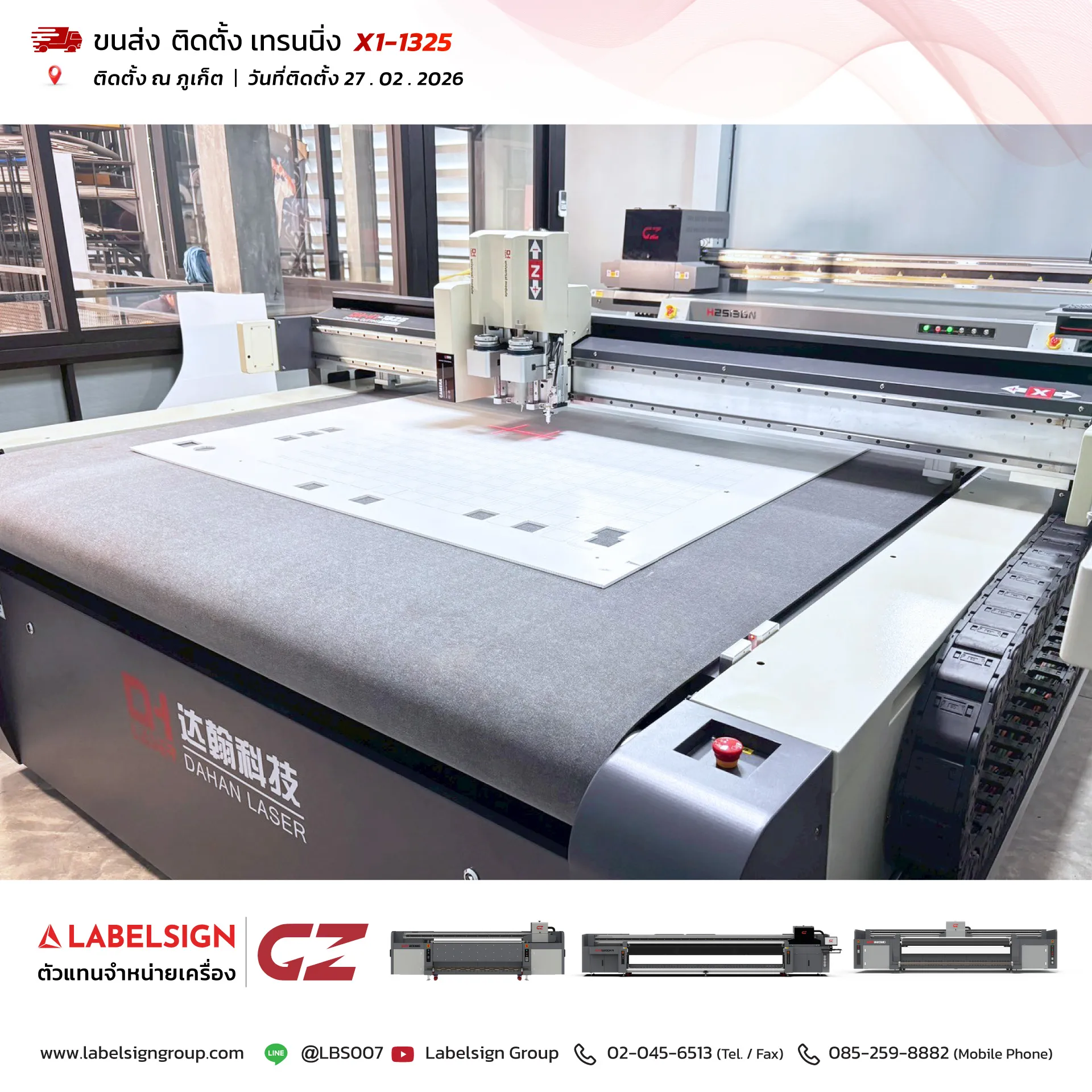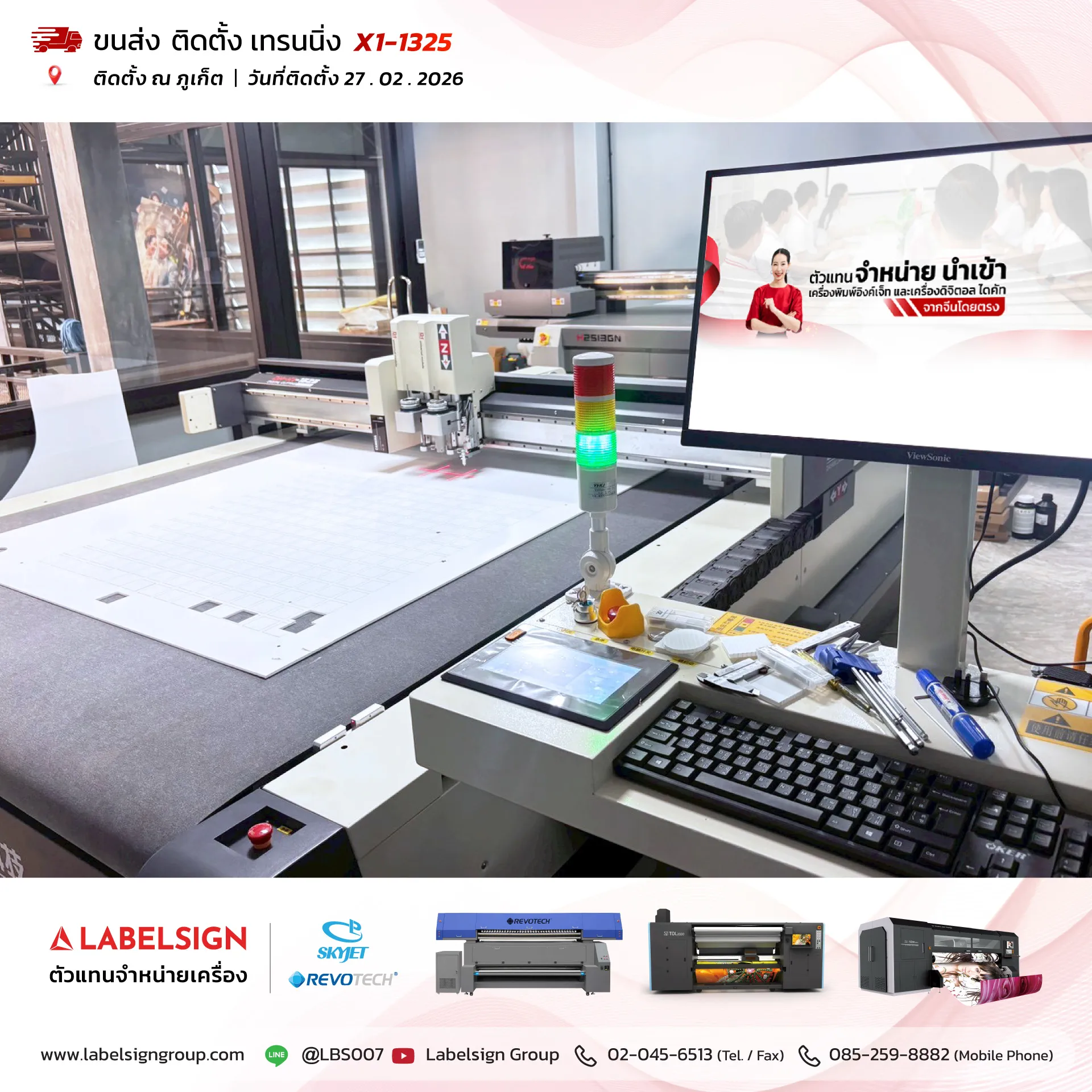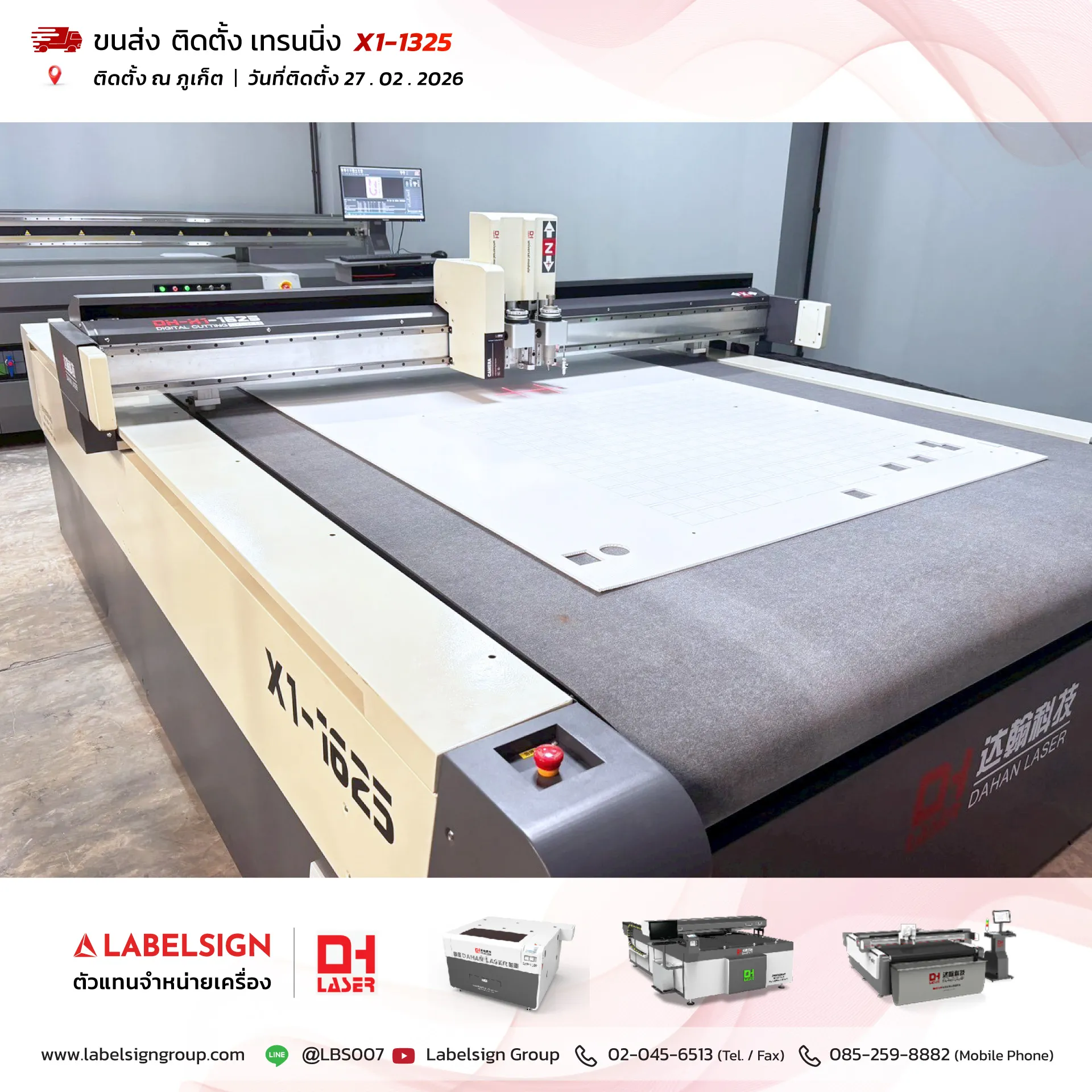 27 กุมภาพันธ์ 2026 จัดส่ง ติดตั้ง เทรนนิ่ง เครื่องตัดดิจิตอล Digital Cutting Machine Model : X1-1325 ณ ภูเก็ต ขอบพระคุณลูกค้าที่เลือกใช้บริการ "เลเบิ้ลไซน์"
