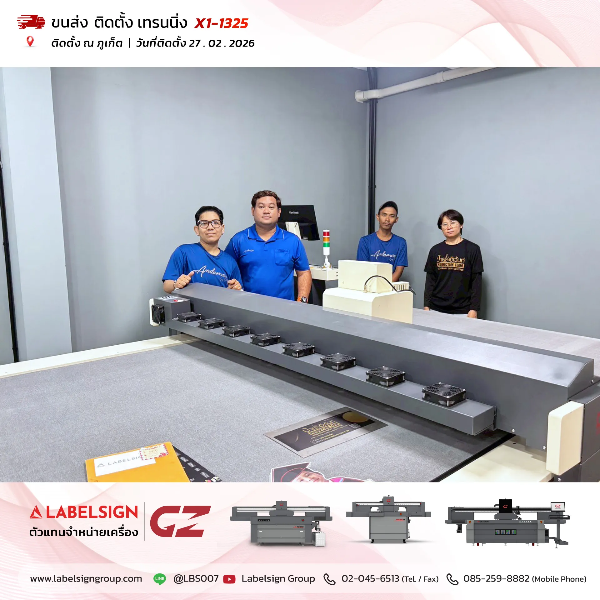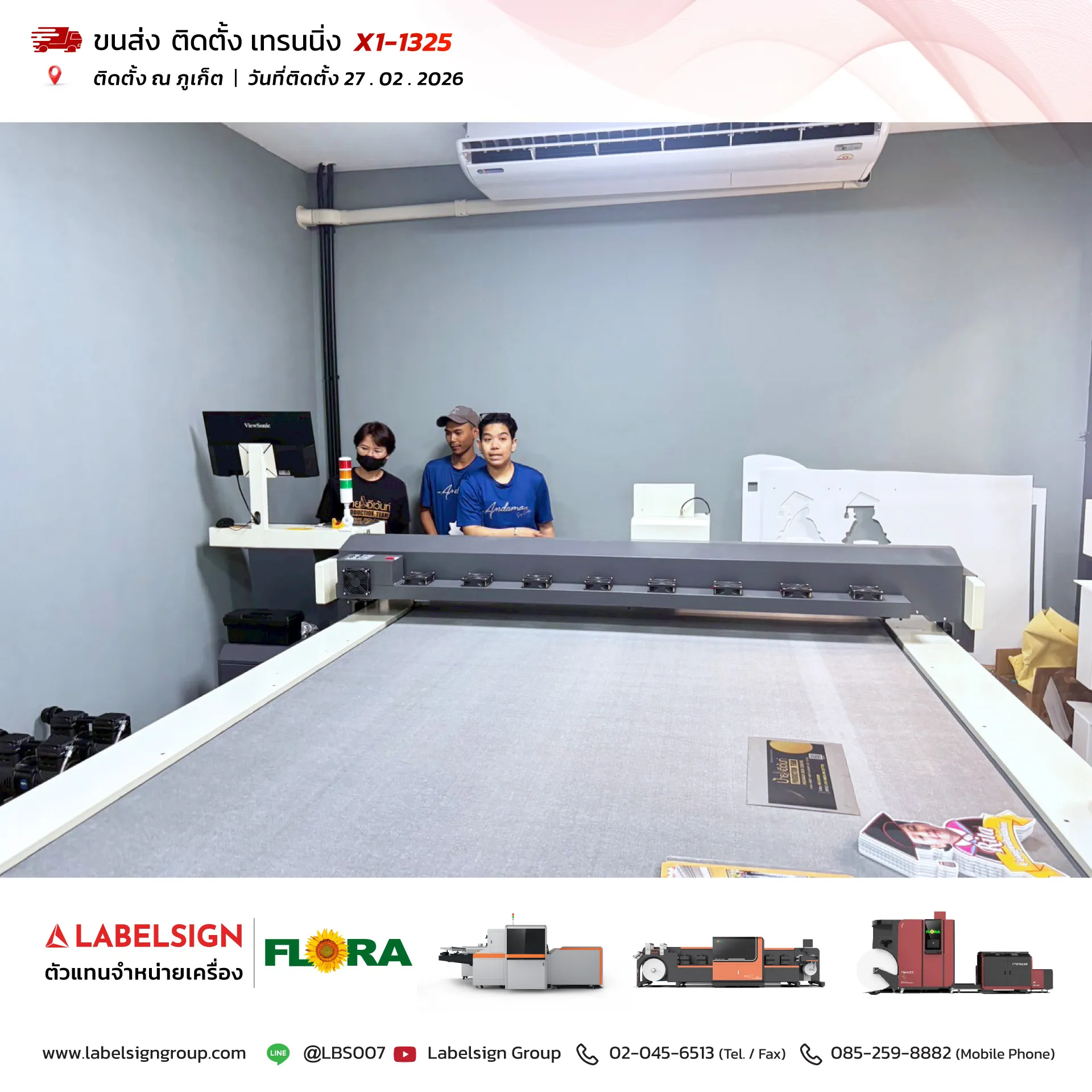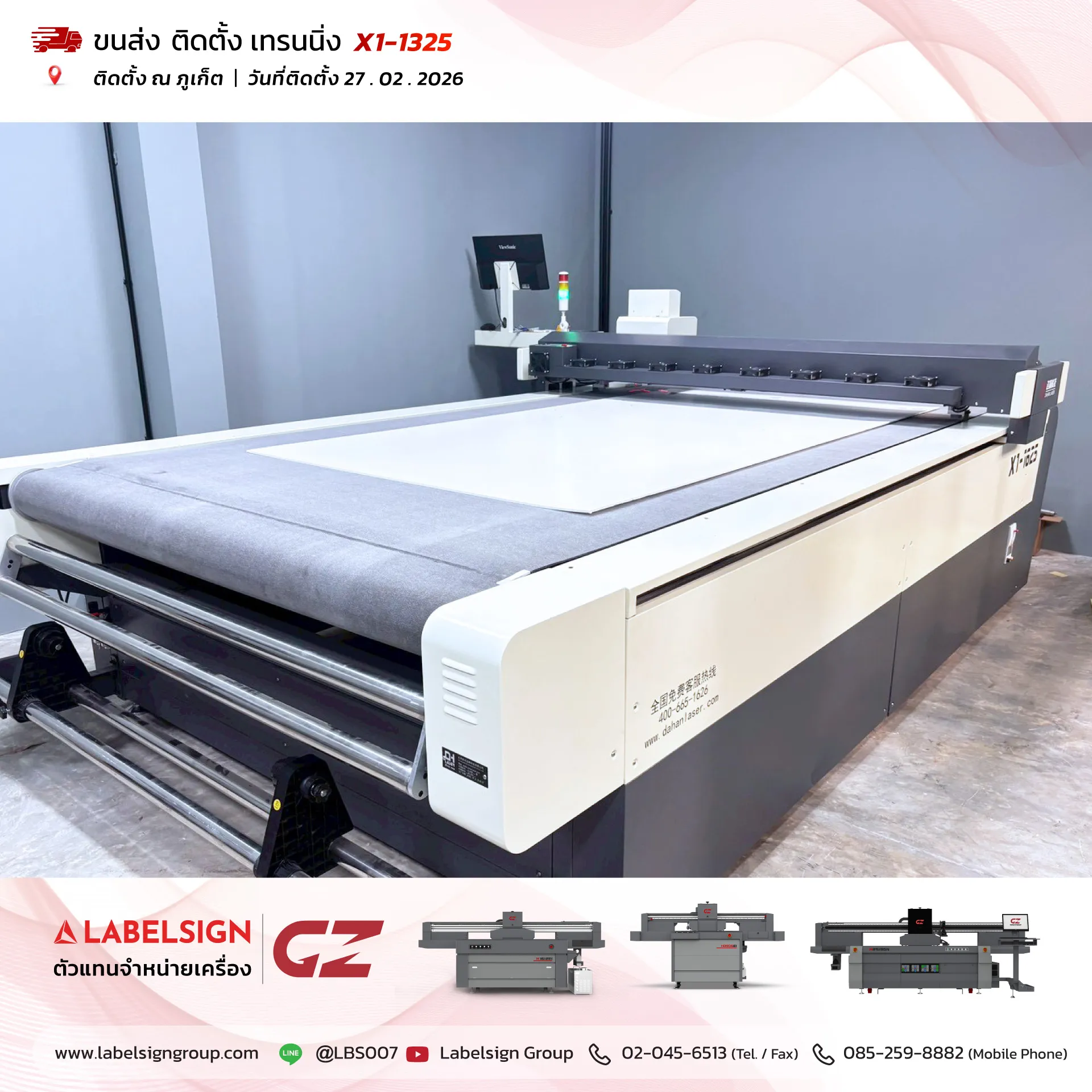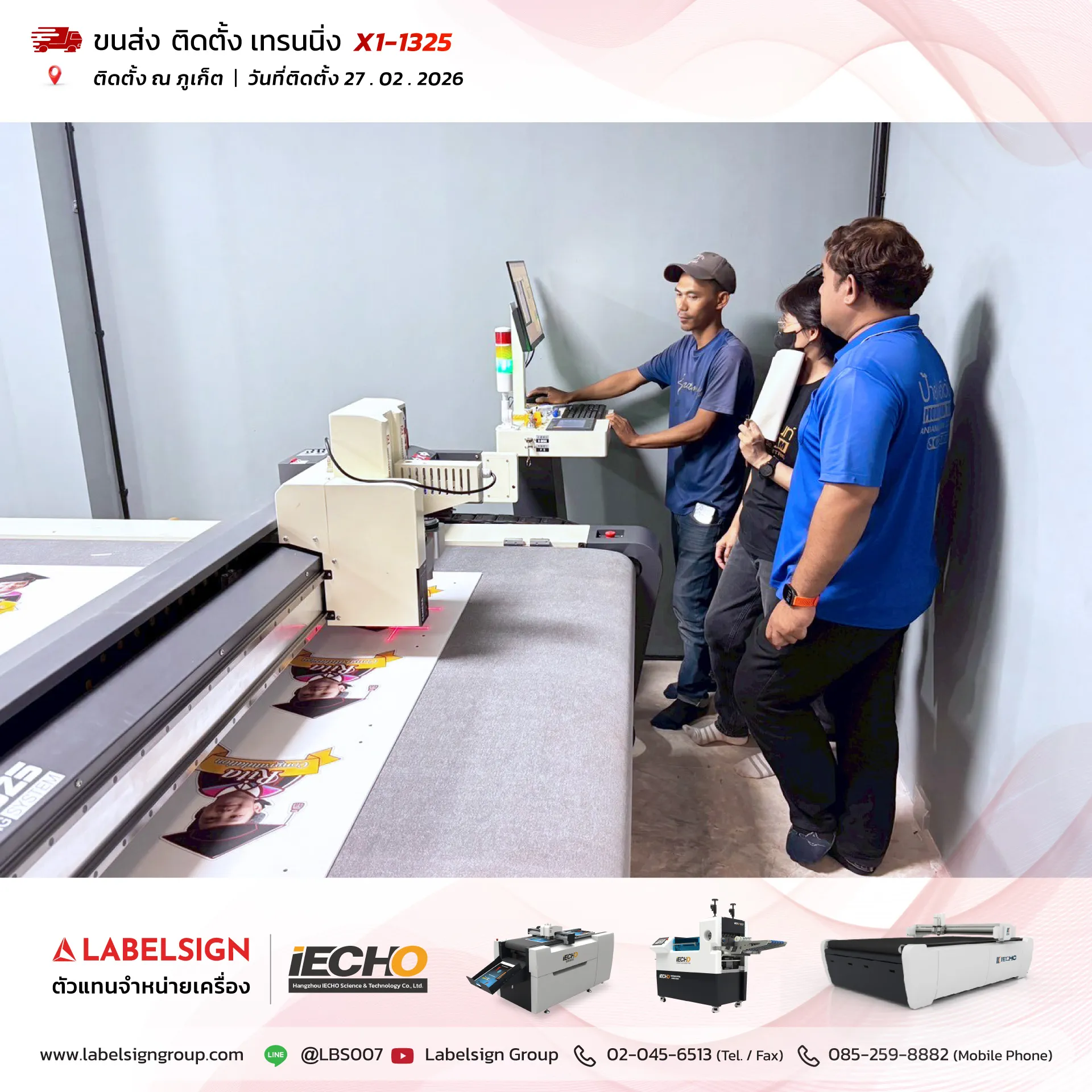 27 กุมภาพันธ์ 2026 จัดส่ง ติดตั้ง เทรนนิ่ง เครื่องตัดดิจิตอล Digital Cutting Machine Model : X1-1325 ณ ภูเก็ต ขอบพระคุณลูกค้าที่เลือกใช้บริการ "เลเบิ้ลไซน์"