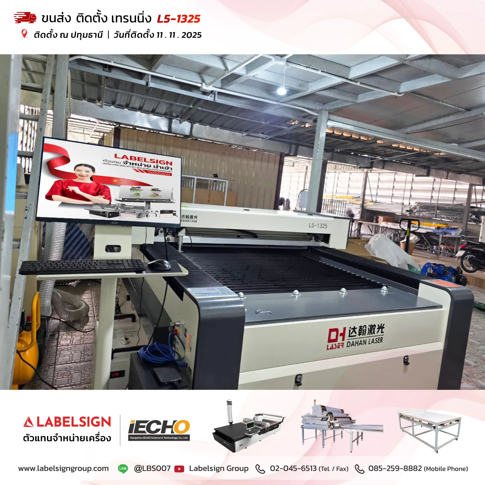 11 พฤศจิกายน 2025 จัดส่ง ติดตั้ง เทรนนิ่ง เครื่องตัดเลเซอร์ Co2 Laser Co2 Cutting Machine Model : L5-1325 ณ ปทุมธานี ขอบพระคุณลูกค้าที่เลือกใช้บริการ "เลเบิ้ลไซน์"