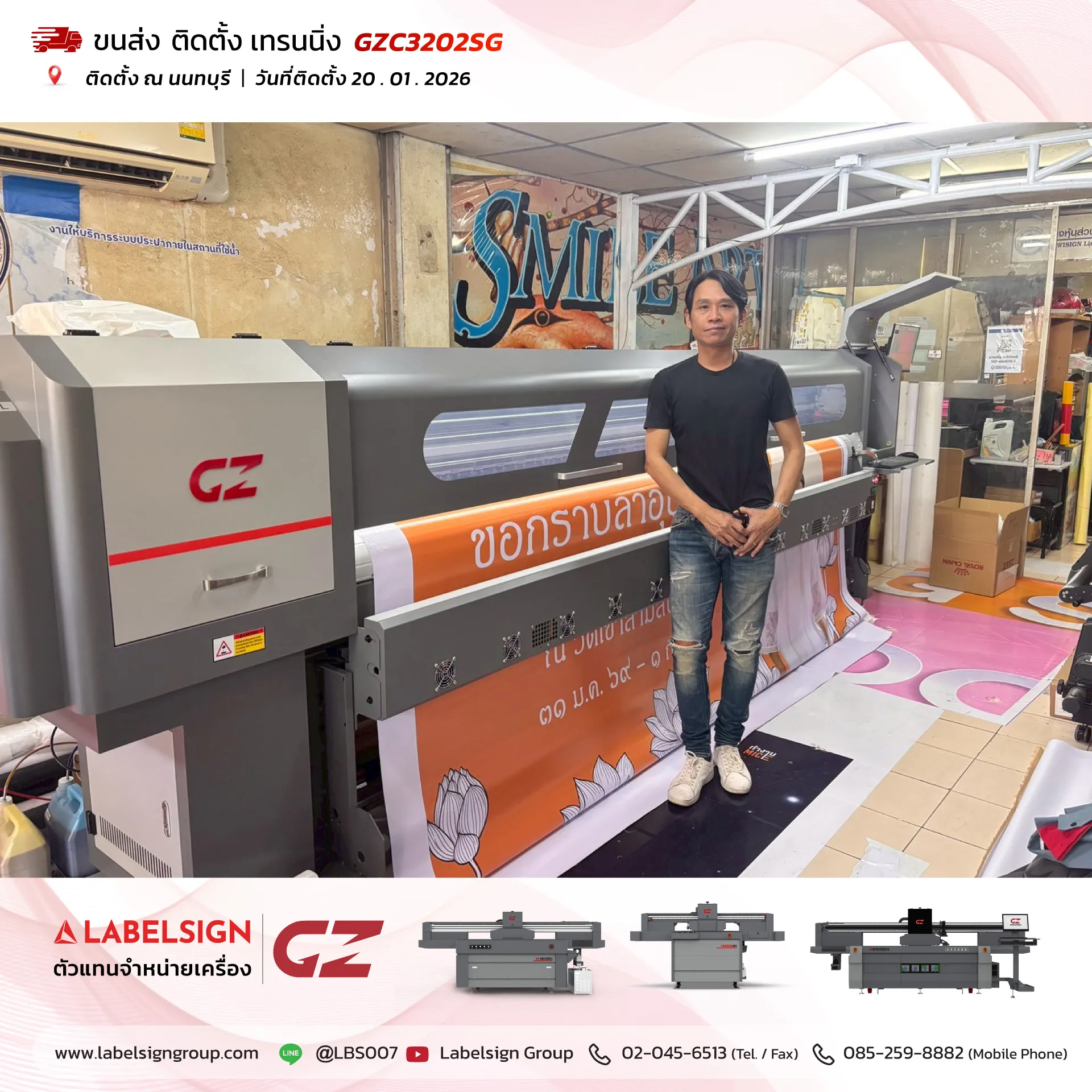 20 มกราคม 2026 จัดส่ง ติดตั้ง เทรนนิ่ง เครื่องพิมพ์ไวนิล Vinyl Printer Model : GZC3202SG ณ นนทบุรี ขอบพระคุณลูกค้าที่เลือกใช้บริการ "เลเบิ้ลไซน์"