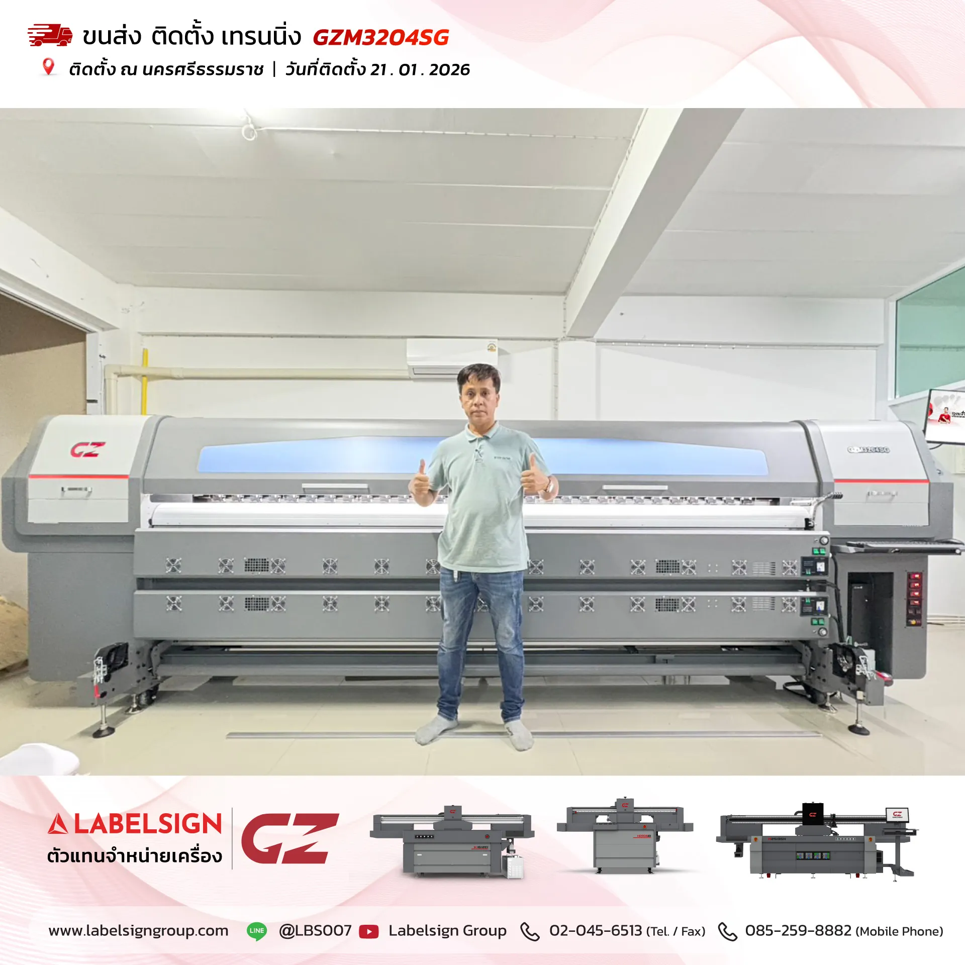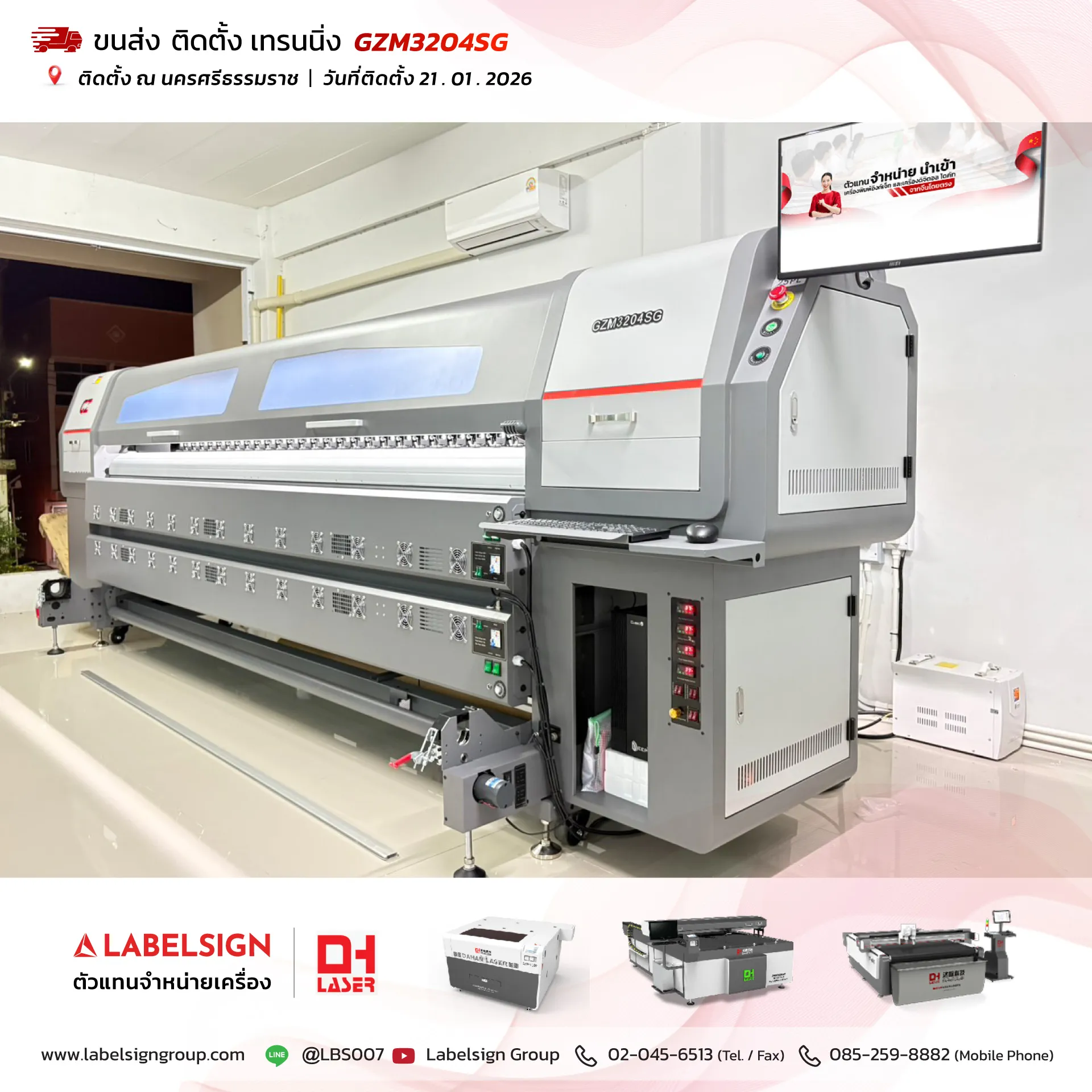 21 มกราคม 2026 จัดส่ง ติดตั้ง เทรนนิ่ง เครื่องพิมพ์ไวนิล Vinyl Printer Model : GZM3204SG ณ นครศรีธรรมราช ขอบพระคุณลูกค้าที่เลือกใช้บริการ "เลเบิ้ลไซน์"